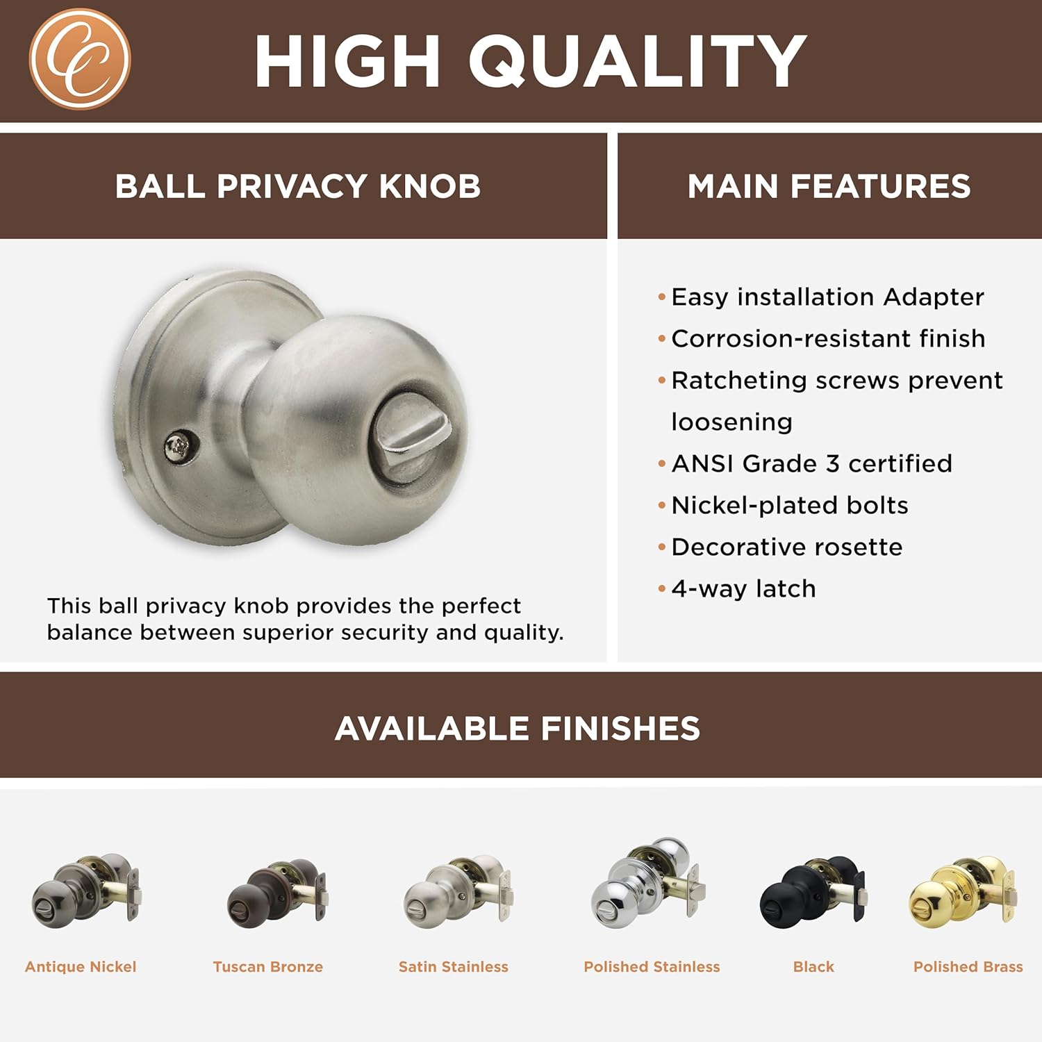 Copper Creek BK2030SS Ball Door Knob, Privacy Function, 1 Pack, Satin Stainless