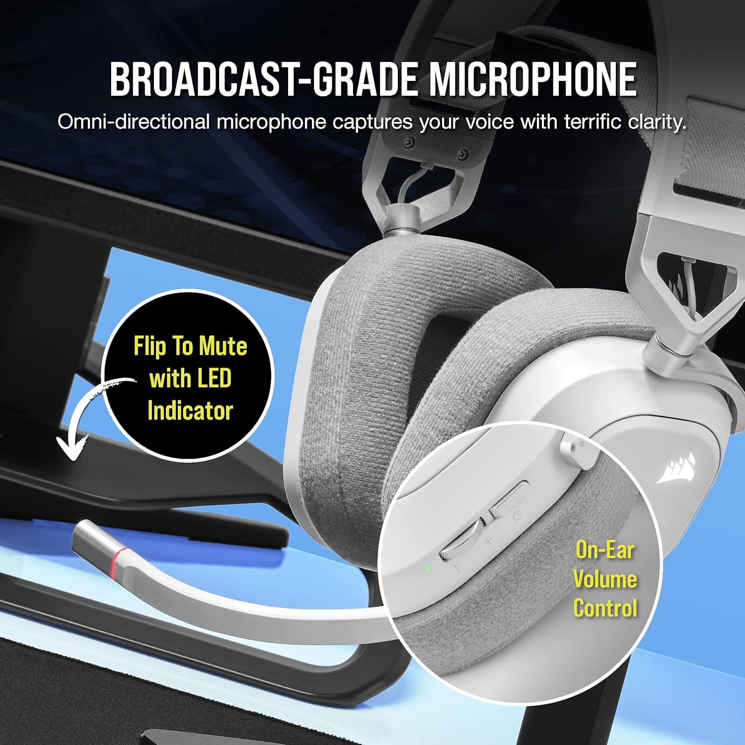 CORSAIR HS80 RGB WIRELESS Multiplatform Gaming Headset – Dolby Atmos – Lightweight Comfort Design – Broadcast Quality Microphone – iCUE Compatible – PC, Mac, PS5, PS4 – White