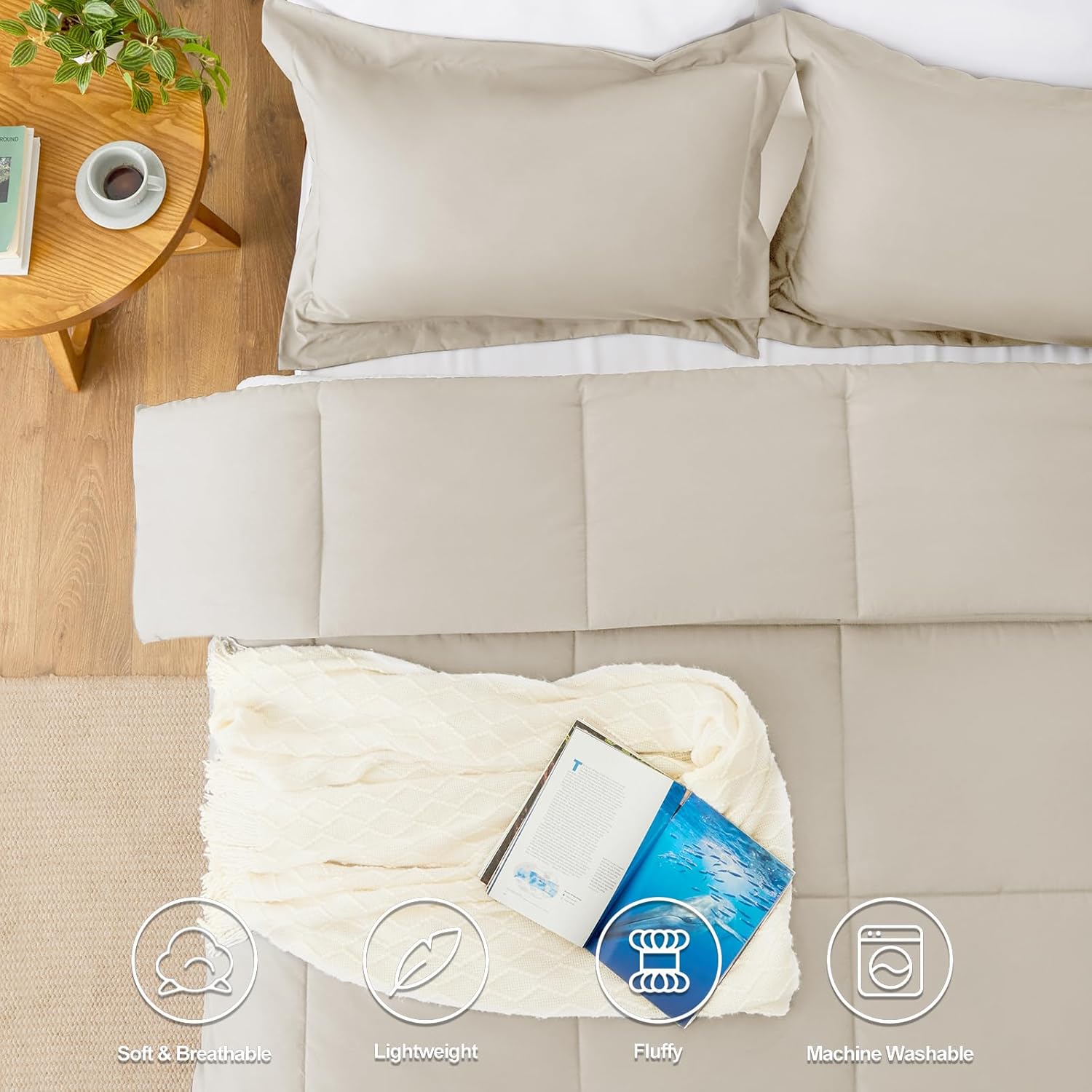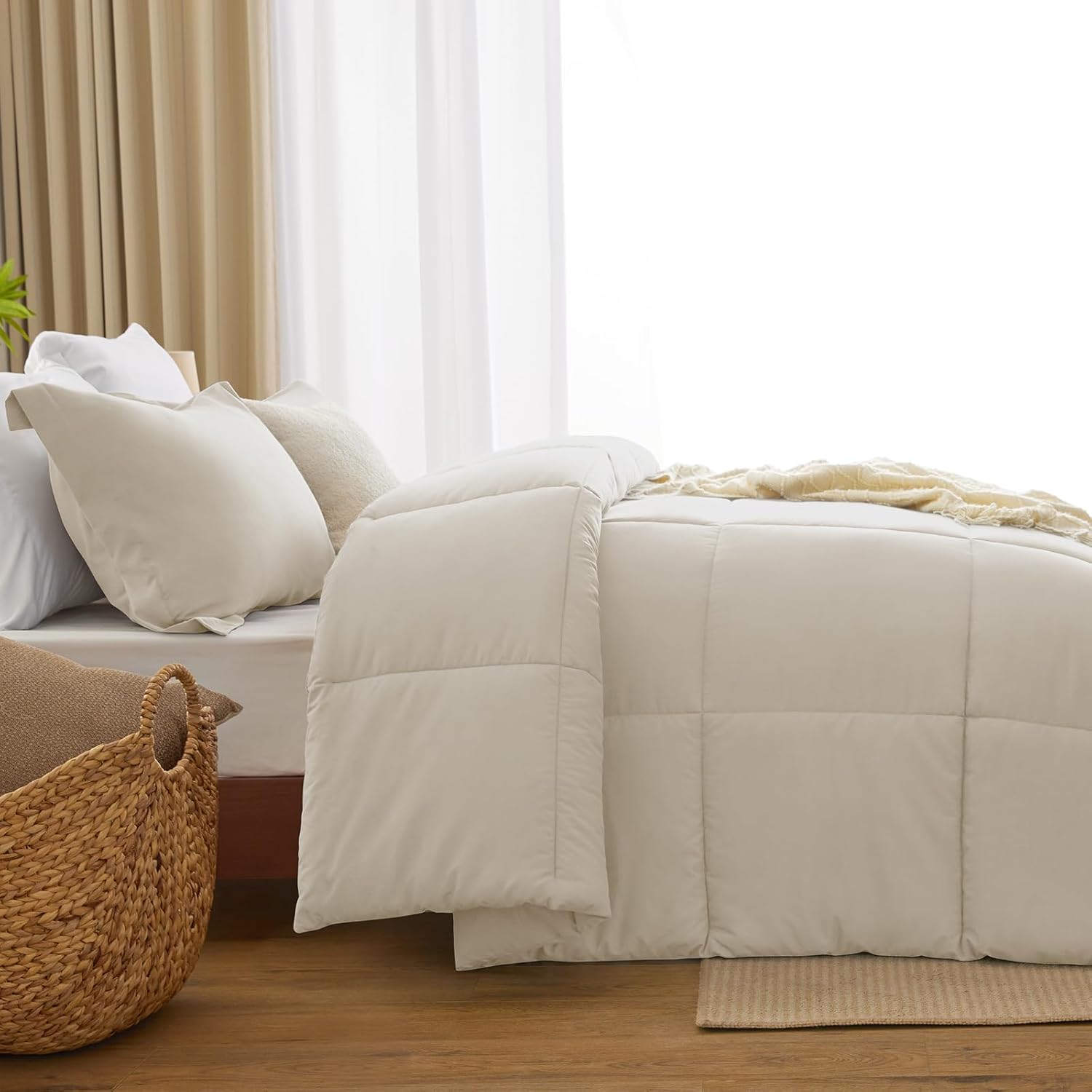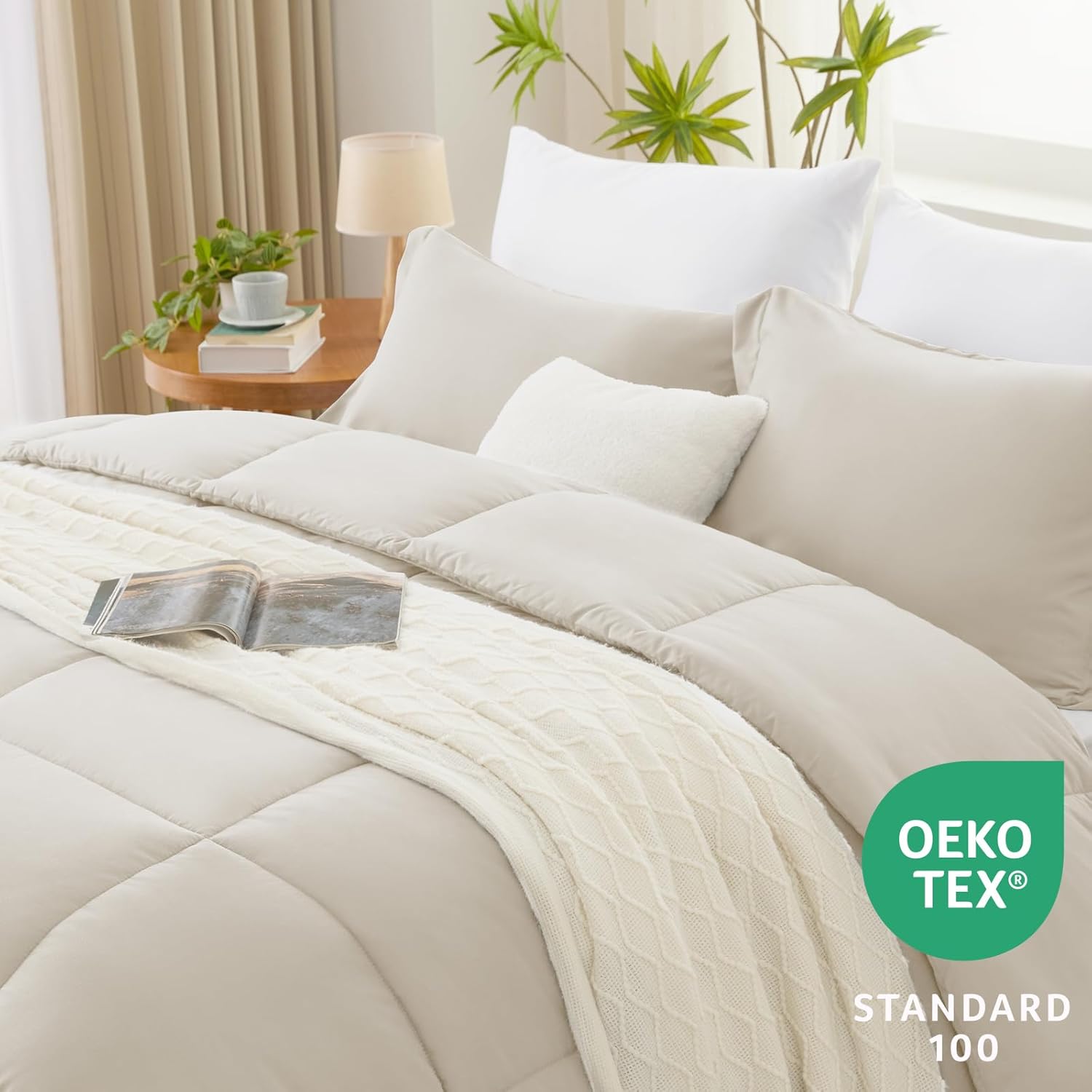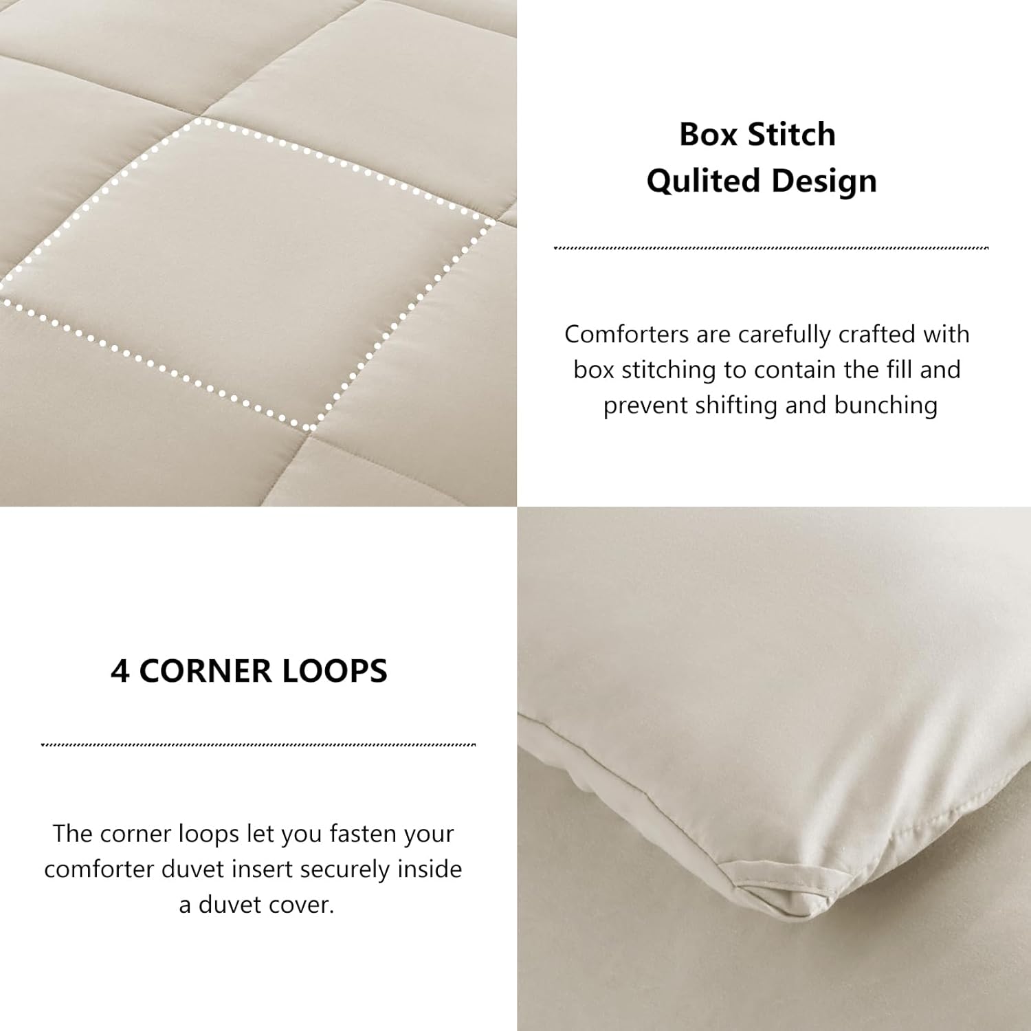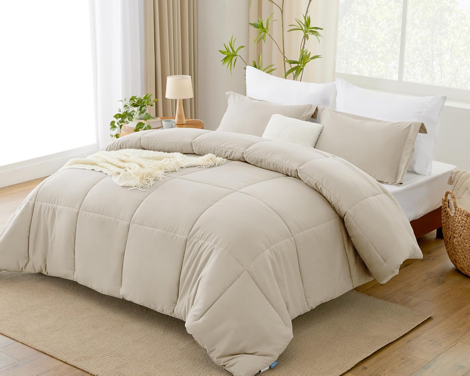 CozyLux Queen Comforter Set – Beige Comforter Queen Size, 3 Pieces Box Stitched Bed Set for All Seasons, Soft Lightweight Bedding Sets with 1 Down Alternative Comforter and 2 Pillow Shams
