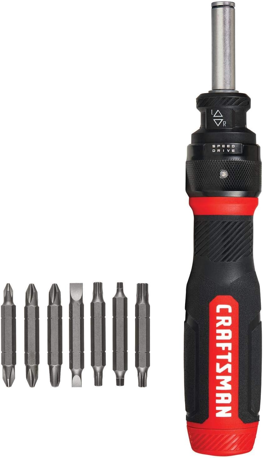 CRAFTSMAN Ratcheting Screwdriver, SpeedDrive, 2 Double Ended Bits Included, Handle Holds Up To 6 Bits (CMHT68129)