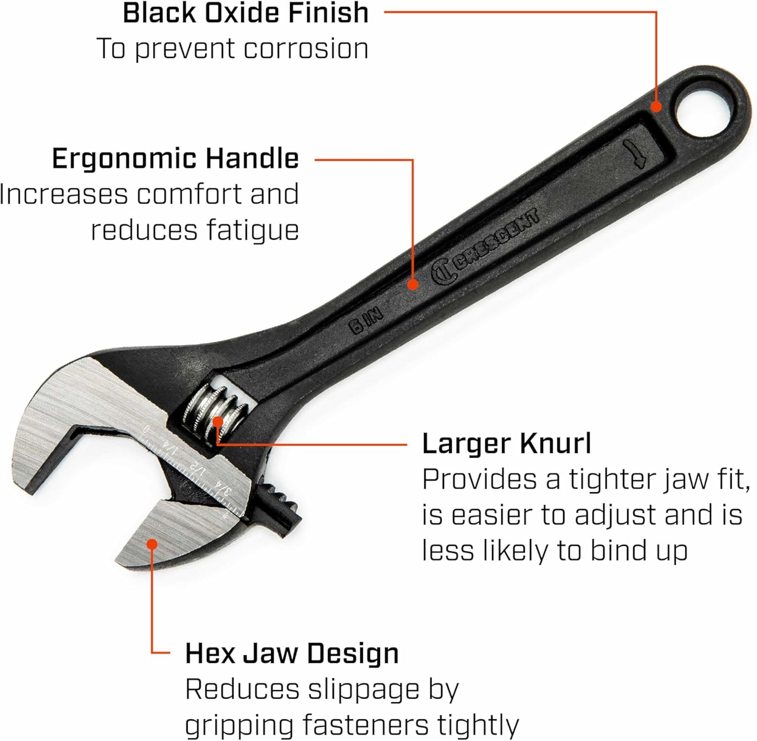 About this itemnAlloy steel and heat treated, Black Oxide finish resists corrosion, Polished head and regular, non-slip grip handlenLaser Etched Scale Provides a Quick and Convenient Way to Determine Fastener Size in Either SAE or MetricnWide Capacity Jaw Allows Each Tool to Work with More Fastener SizesnWider Handle Provides More Comfort and Less Stress to the HandnTension Spring Stabilizes Jaw and Knurl Adjusts Easilyn See more product details