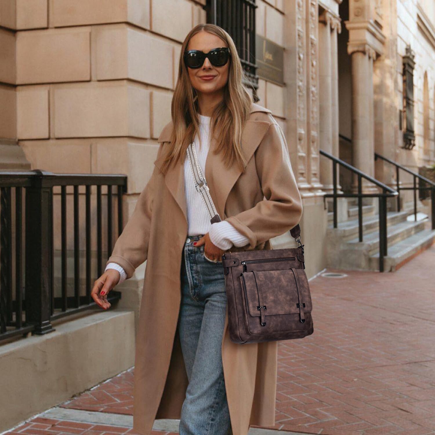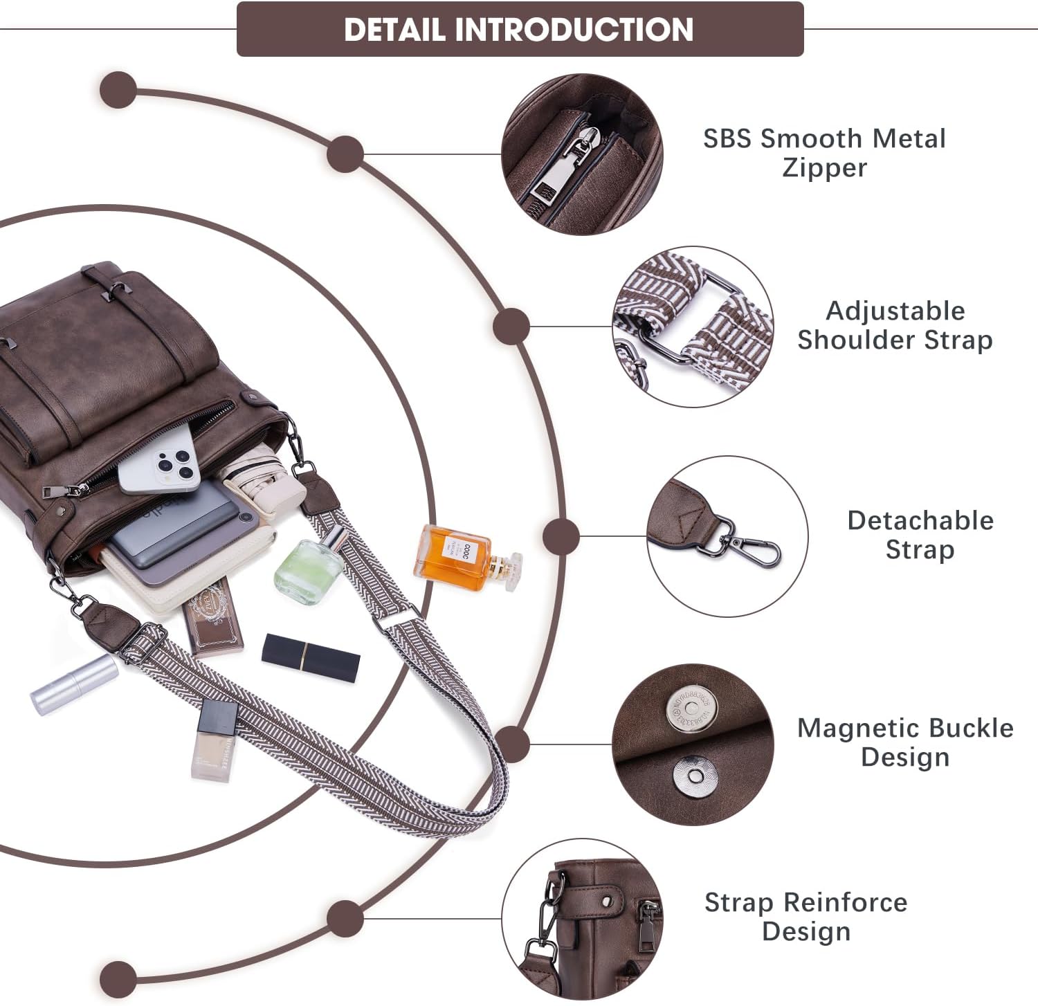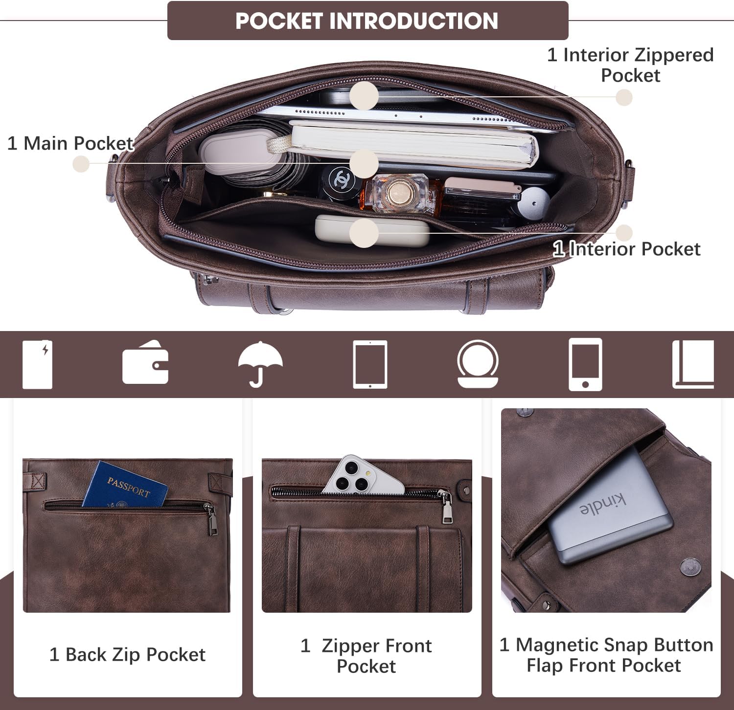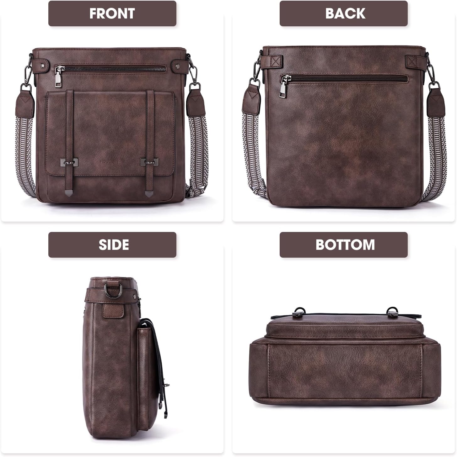 Crossbody Bags for Women,Multi Pocket Crossbody Purses Soft Leather Shoulder Handbags Travel Purse Adjustable Strap