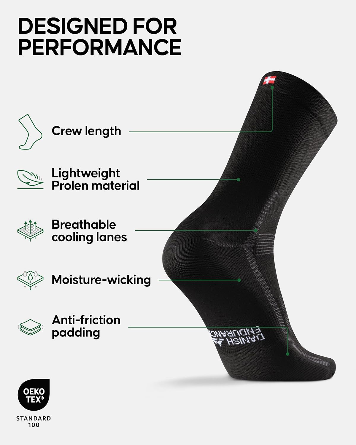 DANISH ENDURANCE Cycling Socks, Crew Length, Breathable, and Cushioned Bike Socks, for Men & Women, Unisex, 3-Pack