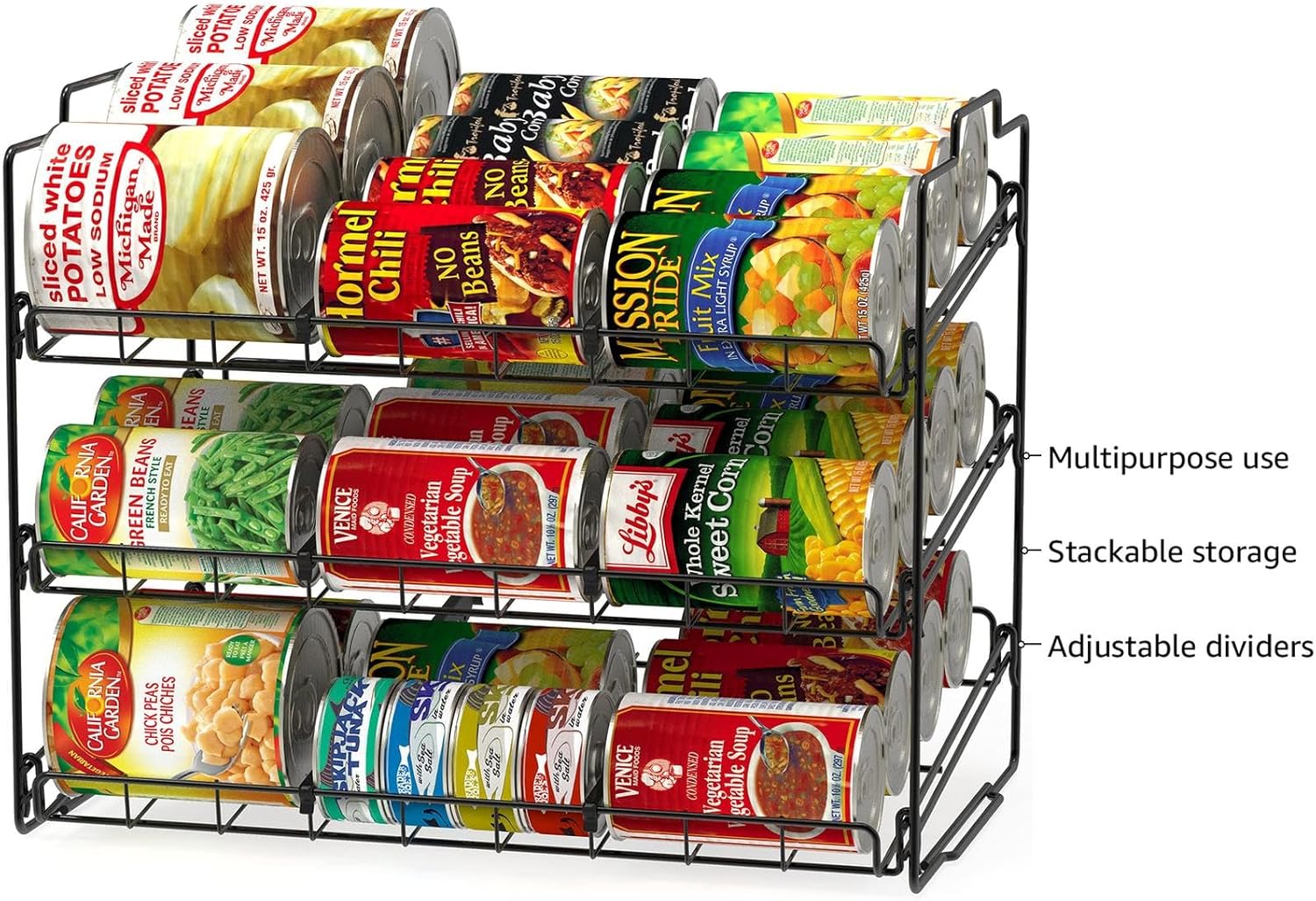 Deco Brothers Stackable Can Rack Organizer for Kitchen and Pantry, 3 Tier, Black