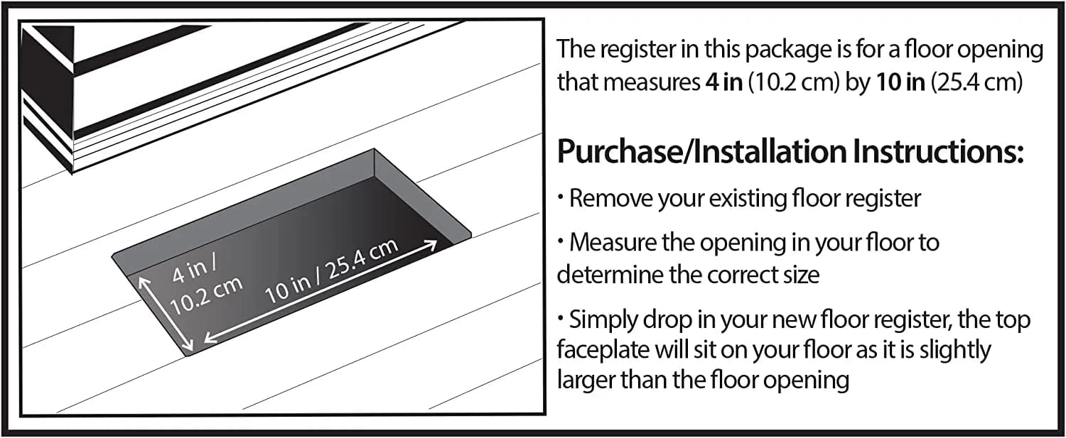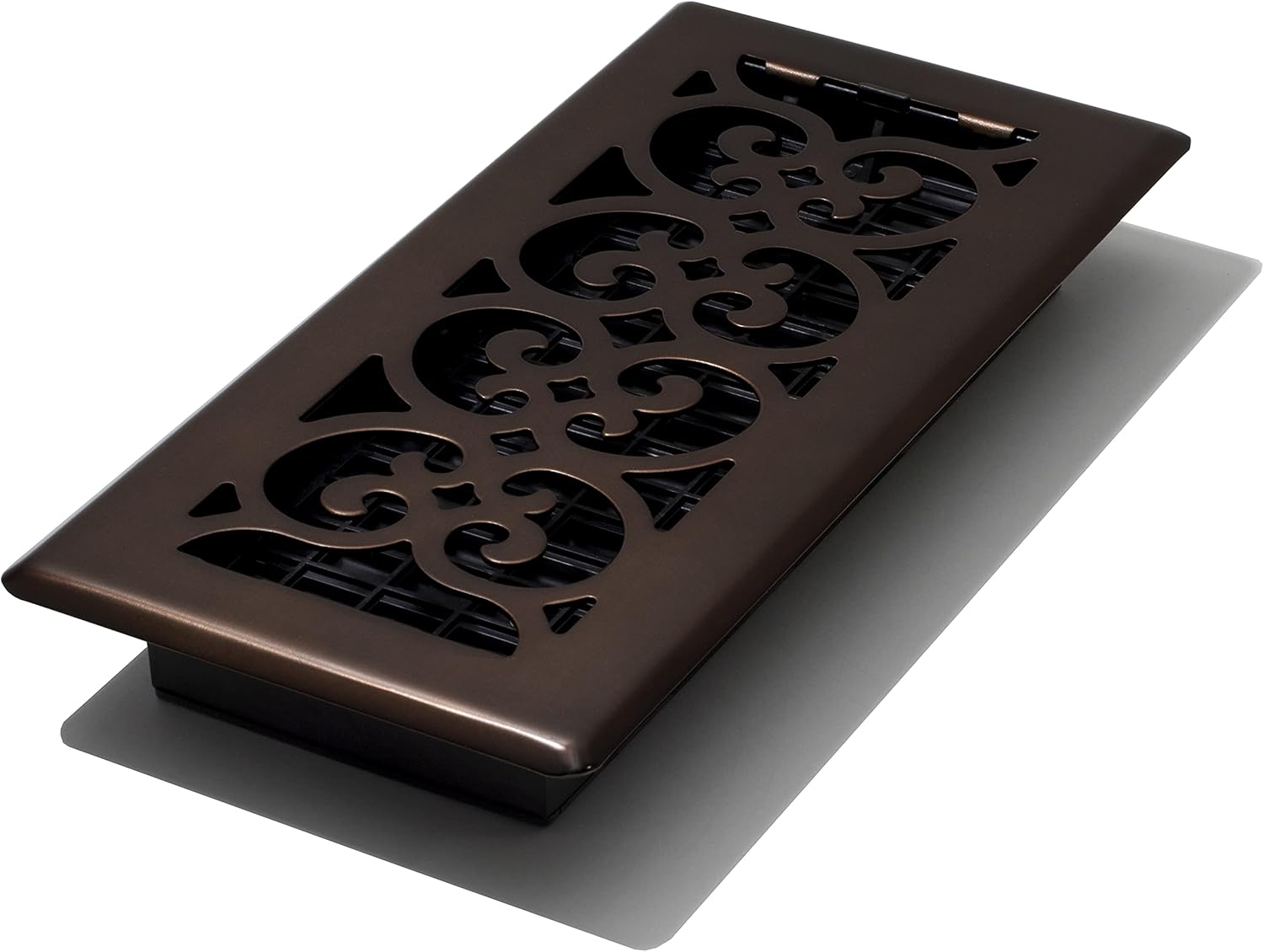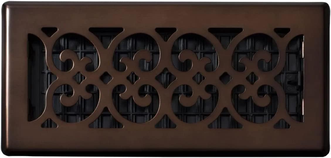 Scroll Design steel plated – Rubbed Bronze finish floor registernEasy to install – Just drop into vent – no tools requirednMetal damper boxes rust and seize up, so we make our damper boxes with recycled high impact polystyrene; this is not a cheaper option, it’s the best optionnAvailable in a variety of styles and finishes to match any decornFilter retainer and filter are sold separatelyn› See more product details