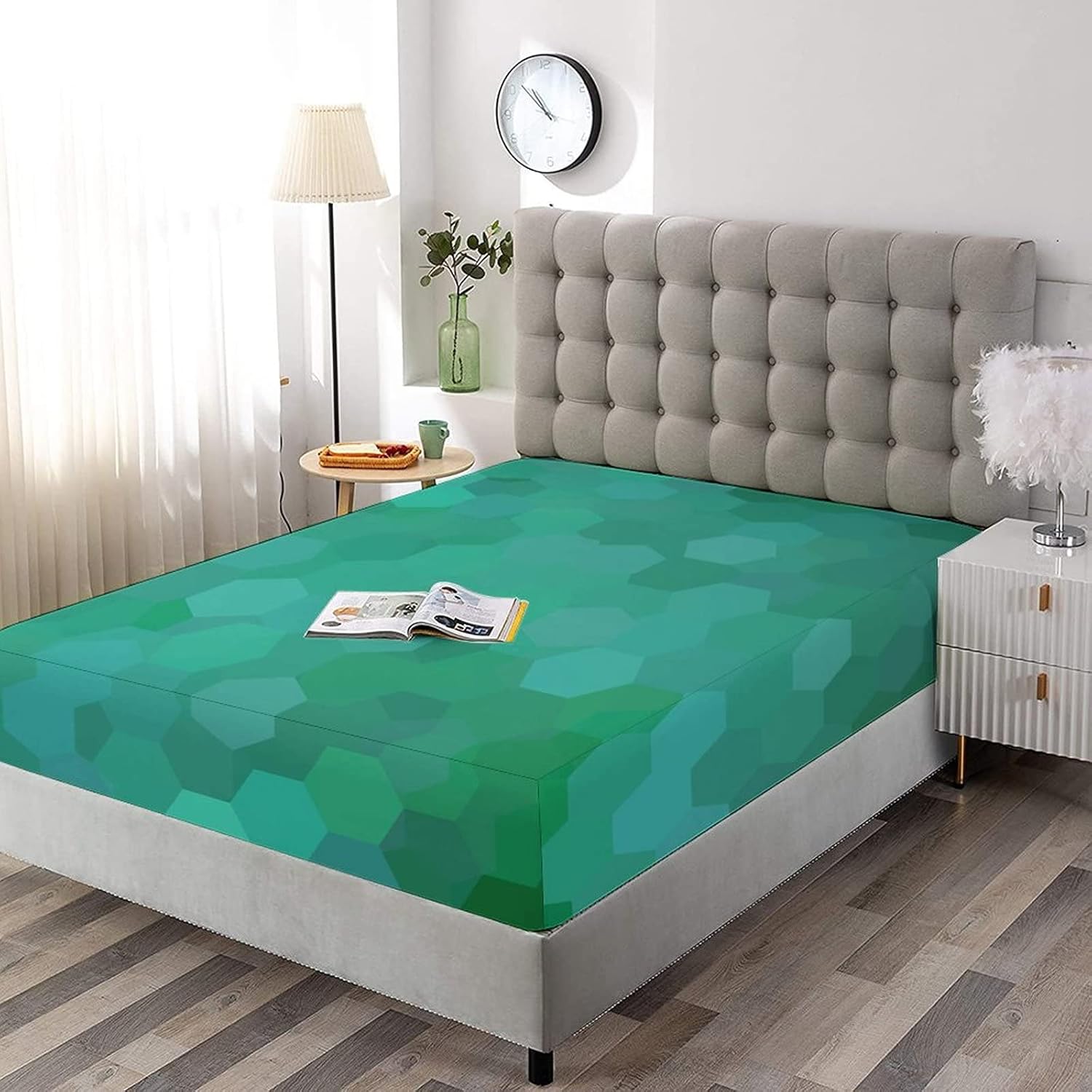Decorative Bedding Sheet Set Twin Size, Geometric Deep Pockets Fitted Sheet & 2 Pillowcases Set(No Flat Sheet), Green Mosaic Pattern Print Microfiber 3pc Bed Sheets Set, for Mattress (Deep: 5