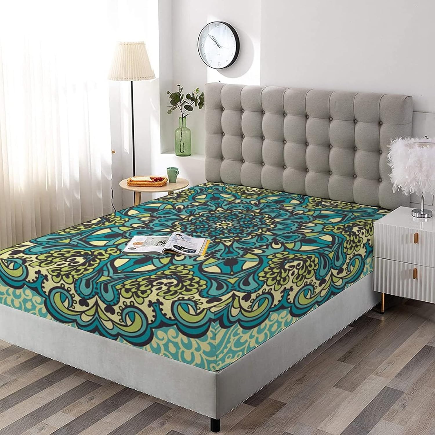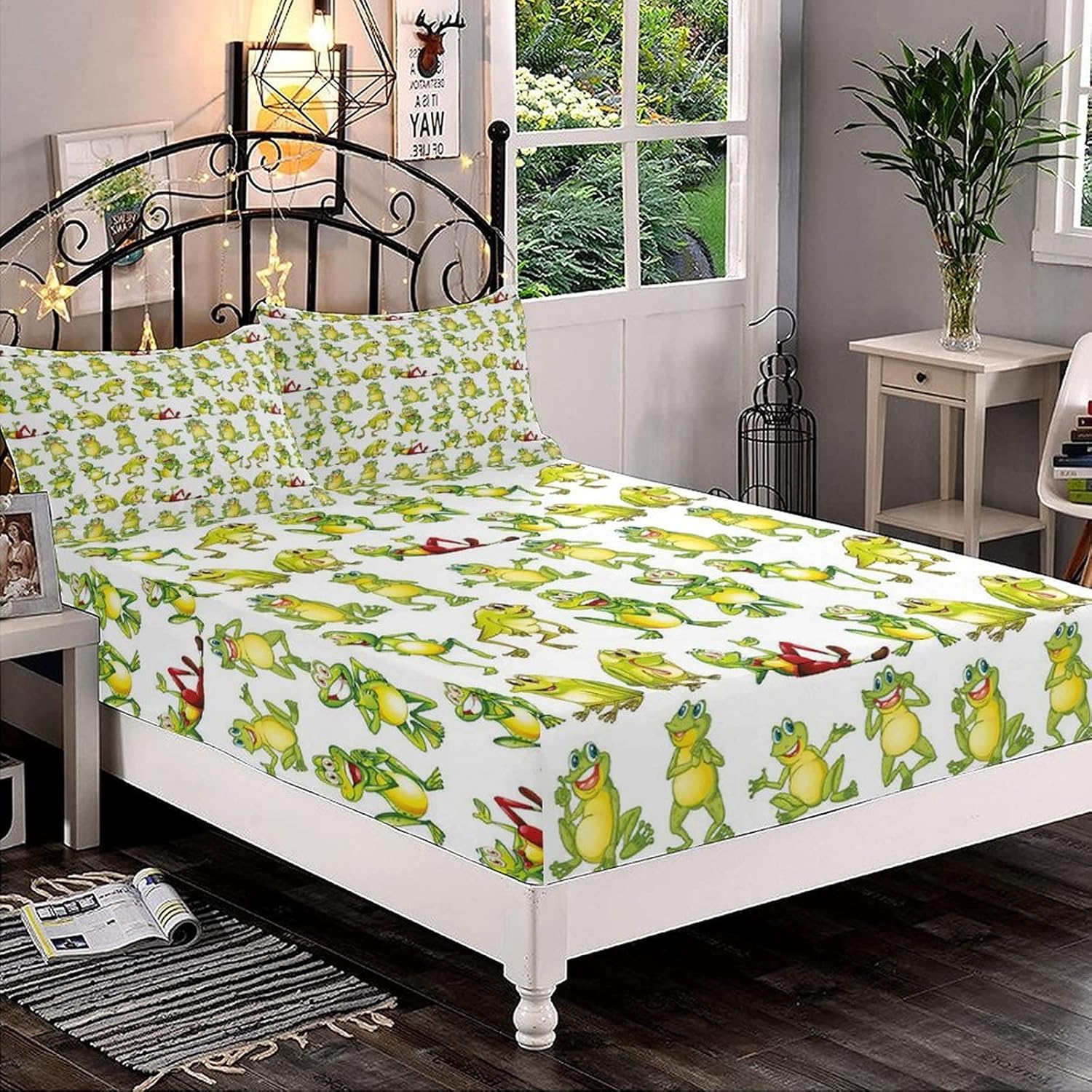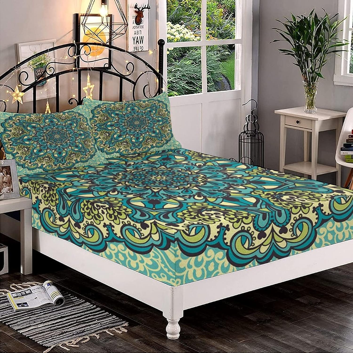 About this itemnBed Sheet Set: Twin XL size 3-piece bed sheets set comprising of 1 fitted sheet measuring 48 by 80 inches with a 15 inches box and 2 pillowcases measuring 20 by 30 inches.nHIGHEST QUALITY WORKMANSHIP: Made with super soft 100% brushed microfiber fabric. Sheet and sham set with modern prints.Items printed on the front side only.nFEATURES: Deep pocket fitted sheet with elastic all around (not just the corners,like other sheets). Fits mattresses up to 12