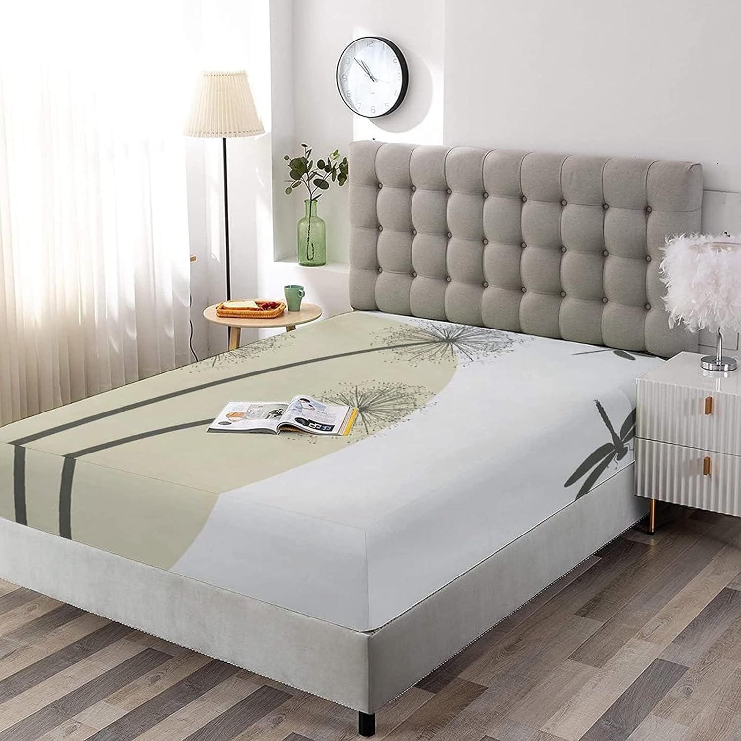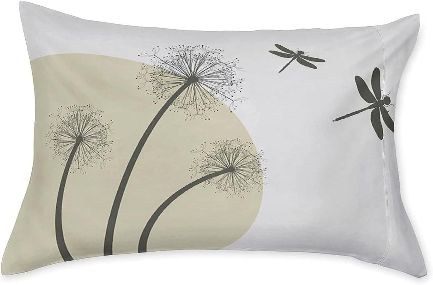 Decorative Bedding Sheet Set Twin XL Size, Dragonfly Deep Pockets Fitted Sheet & 2 Pillow Sham Set, Spring Dandelions Botany Blossoming Petals Print Microfiber 3pc Bed Sheets Set