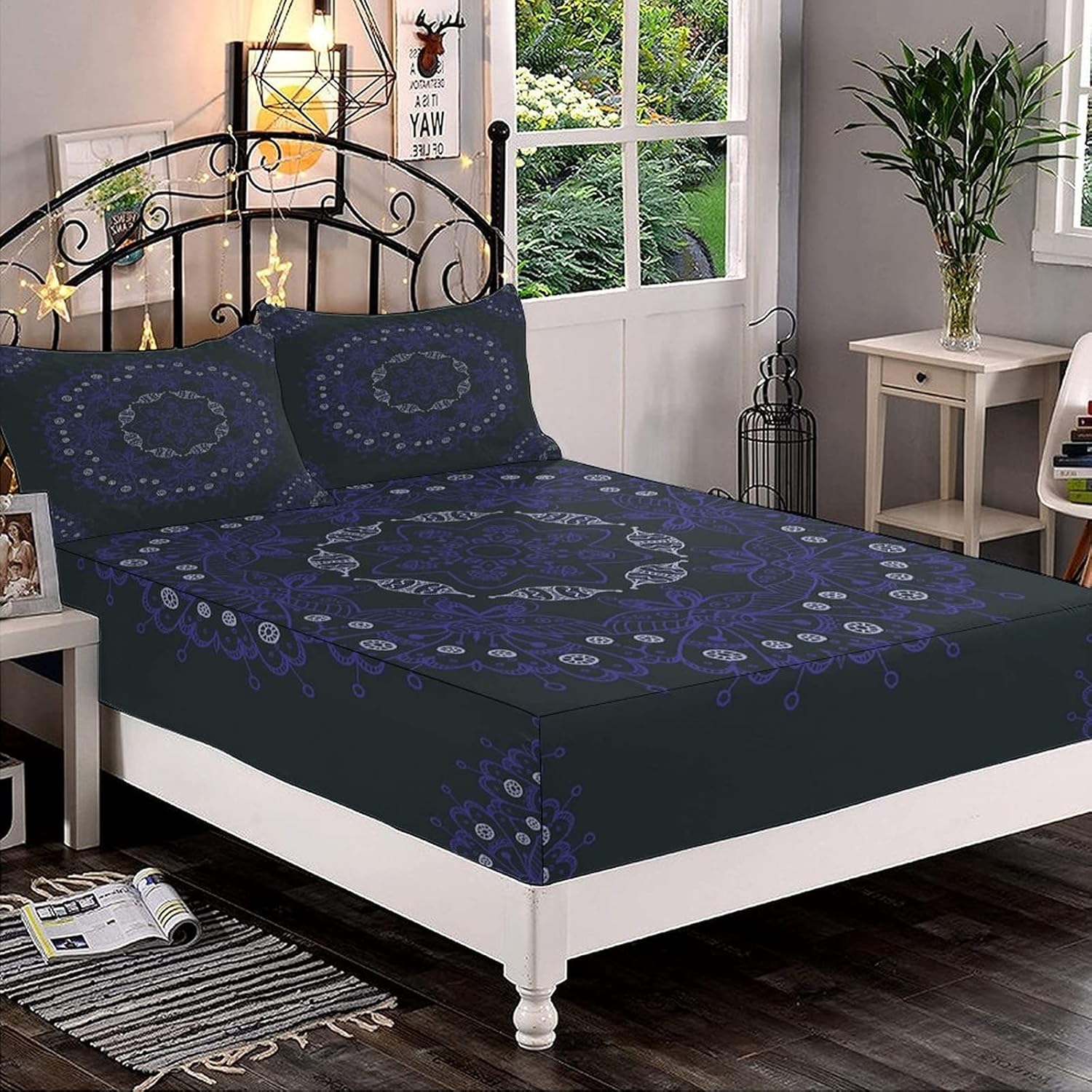 About this itemnBed Sheet Set: Twin XL size 3-piece bed sheets set comprising of 1 fitted sheet measuring 48 by 80 inches with a 15 inches box and 2 pillowcases measuring 20 by 30 inches.nHIGHEST QUALITY WORKMANSHIP: Made with super soft 100% brushed microfiber fabric. Sheet and sham set with modern prints.Items printed on the front side only.nFEATURES: Deep pocket fitted sheet with elastic all around (not just the corners,like other sheets). Fits mattresses up to 12