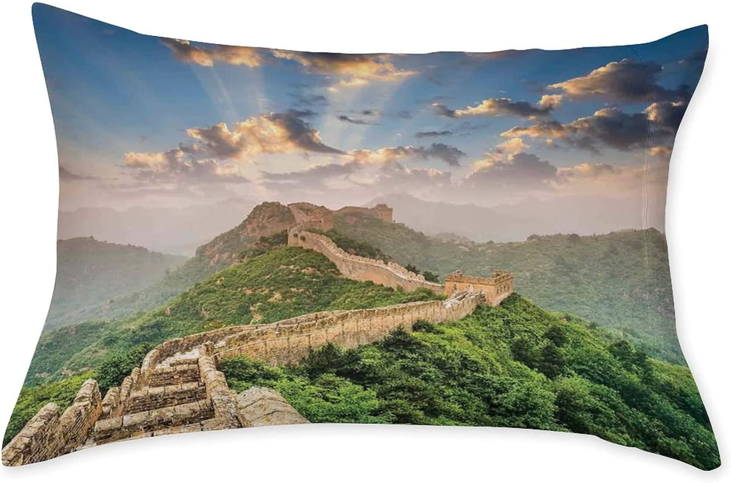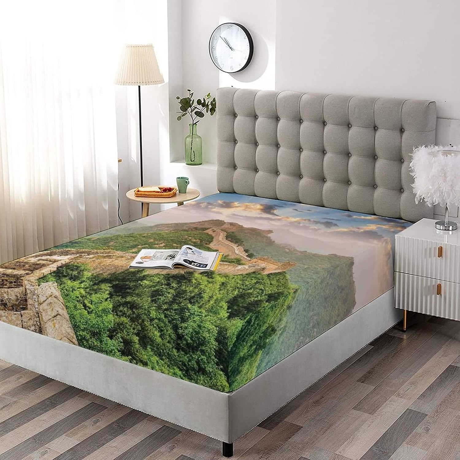 Decorative Bedding Sheet Set Twin XL Size, Great Wall of China Fitted Sheet & 2 Pillowcases Set(No Flat Sheet), Oriental Medieval Blockade on High Lands Print Microfiber 3pc Bed Sheets Set