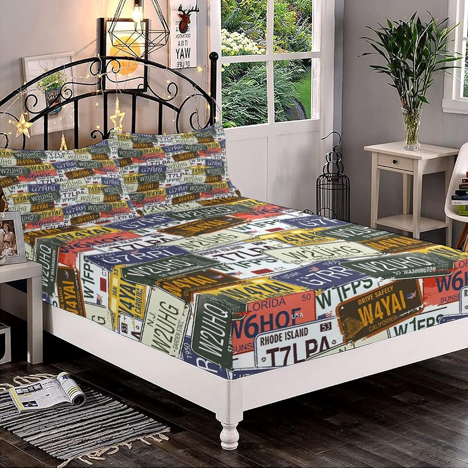About this itemnBed Sheet Set: Twin XL size 3-piece bed sheets set comprising of 1 fitted sheet measuring 48 by 80 inches with a 15 inches box and 2 pillowcases measuring 20 by 30 inches.nHIGHEST QUALITY WORKMANSHIP: Made with super soft 100% brushed microfiber fabric. Sheet and sham set with modern prints.Items printed on the front side only.nFEATURES: Deep pocket fitted sheet with elastic all around (not just the corners,like other sheets). Fits mattresses up to 12