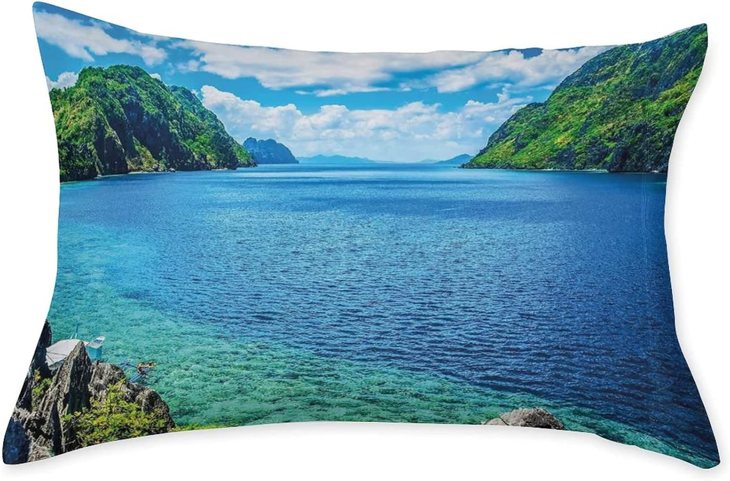 Decorative Bedding Sheet Set Twin XL Size, Nature Deep Pockets Fitted Sheet & 2 Pillow Sham Set, Sea Bay and Mountain Islands in Palawan Philippines Print Microfiber 3pc Bed Sheets Set