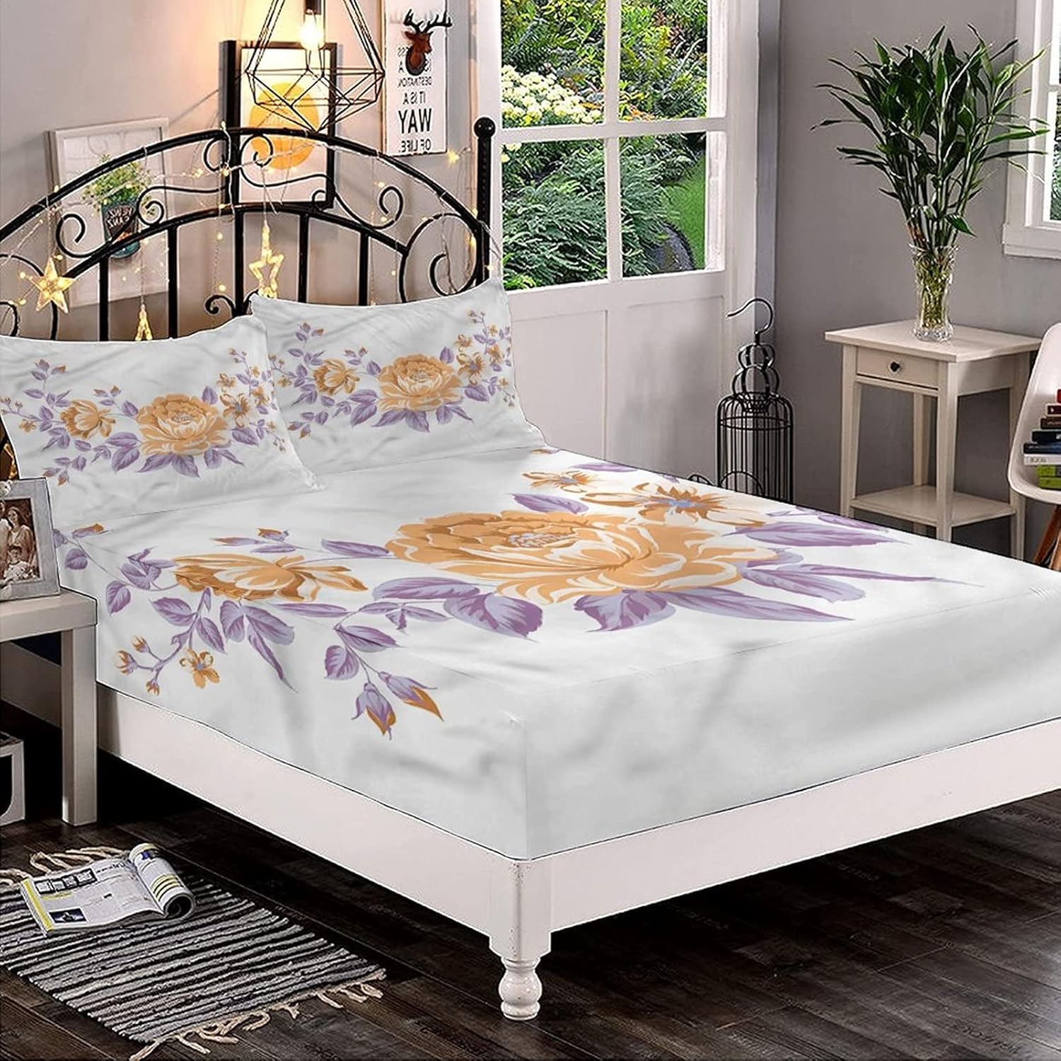 About this itemnBed Sheet Set: Twin XL size 3-piece bed sheets set comprising of 1 fitted sheet measuring 48 by 80 inches with a 15 inches box and 2 pillowcases measuring 20 by 30 inches.nHIGHEST QUALITY WORKMANSHIP: Made with super soft 100% brushed microfiber fabric. Sheet and sham set with modern prints.Items printed on the front side only.nFEATURES: Deep pocket fitted sheet with elastic all around (not just the corners,like other sheets). Fits mattresses up to 12