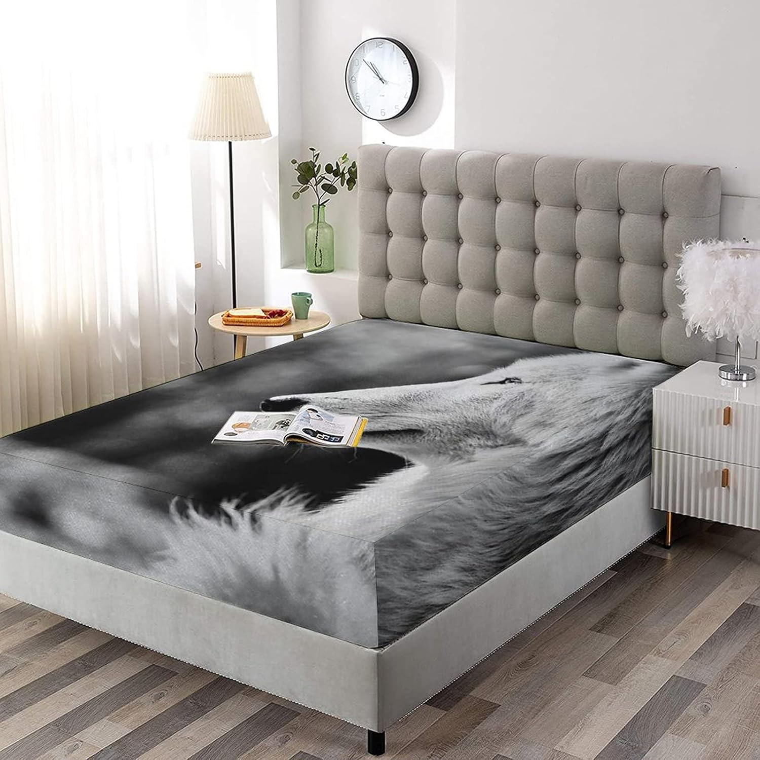 Decorative Bedding Sheet Set Twin XL Size, Wolf Deep Pockets Fitted Sheet & 2 Pillow Sham Set(No Flat Sheet), Animal Profile Portrait Print Microfiber 3pc Bed Sheets Set, for Mattress (Deep: 5