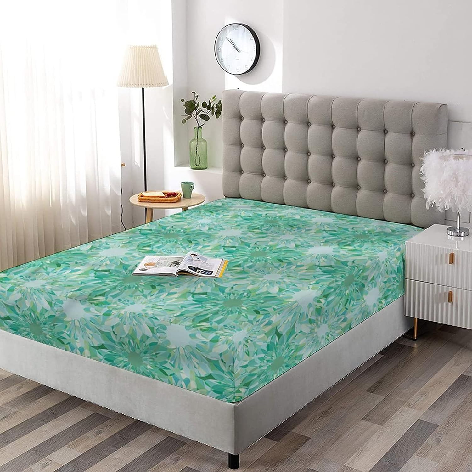 Decorative Fitted Sheet Set Twin Size, Turquoise Deep Pockets Fitted Sheet & 2 Pillow Sham Set(No Flat Sheet), Floral Pattern With Beryl Printed Microfiber Bedding 3pc Set, for Women & Men Bedding