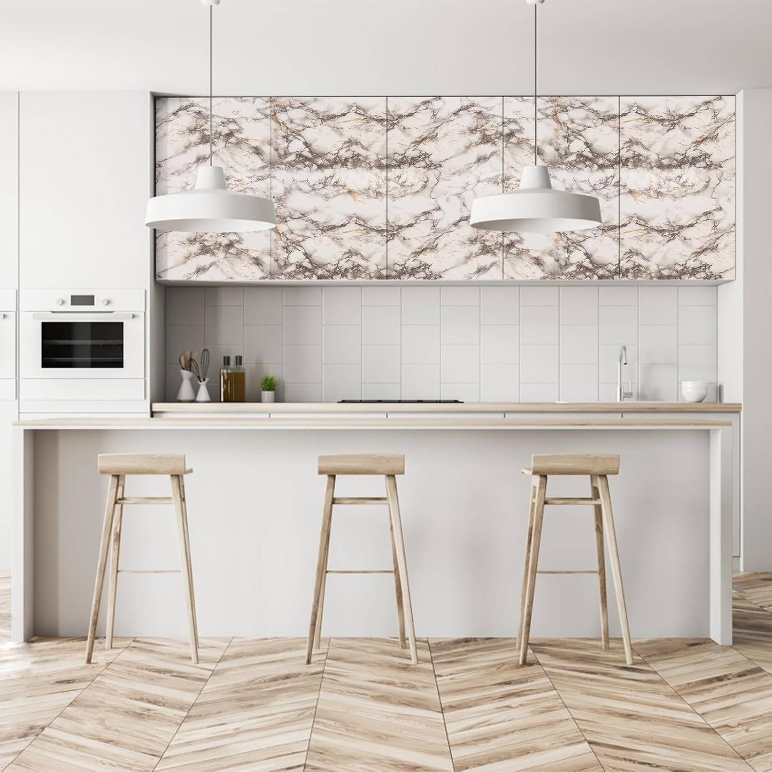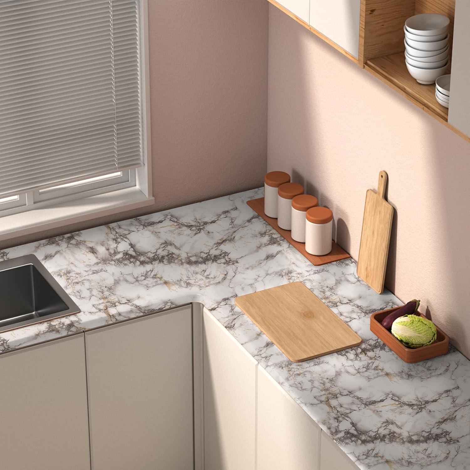 About this itemnFeatures: Glossy marble contact paper is made of PVC, which is self-adhesive, removable, easy to clean and waterproof. No extra glue is needednRealistic Marble Effect: The surface of the product is coated with a film, making it more wear-resistant and retaining the luster of marble. Imitate the real marble texture, the effect is realistic and naturalnEasy to Cut and Install: With grid lines on the back, it is easy to measure and cut. Marble wallpaper can be freely DIY spliced for refurbishing old furniture, a fast and economical alternative to real marblenMulti-scene Application: Peel and stick wallpaper can cover any smooth flat surfaces, such as cabinets, kitchen countertops, shelves, dresser drawers, desks, nightstands, bookcases, bookshelves, doors and walls. Perfect for decorating kitchens, bathrooms, homes and officesnAfter-sales Service: Please buy enough products at one time to avoid slight color difference between batches. In addition, due to different monitors and lighting problems, there may be a slight color difference between the color seen by the naked eye and the color on the screen. If you have any questions during the purchase or use, please feel free to tell me and will try our best to solve it for youn› See more product details