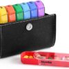 Weekly Pill Organizer Box Case Travel Medication Reminder Daily AM PM, Day Night 7 Compartments in Leather Carrying Case