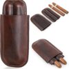 Top Grain Leather Travel Cigar Case Sleeve, Vintage Design, Fully Handmade, Genuine Leather Portable Cigar Humidor Case, Gift Choice for Cigar Lovers, Vintage Coffee for 2 Fingers