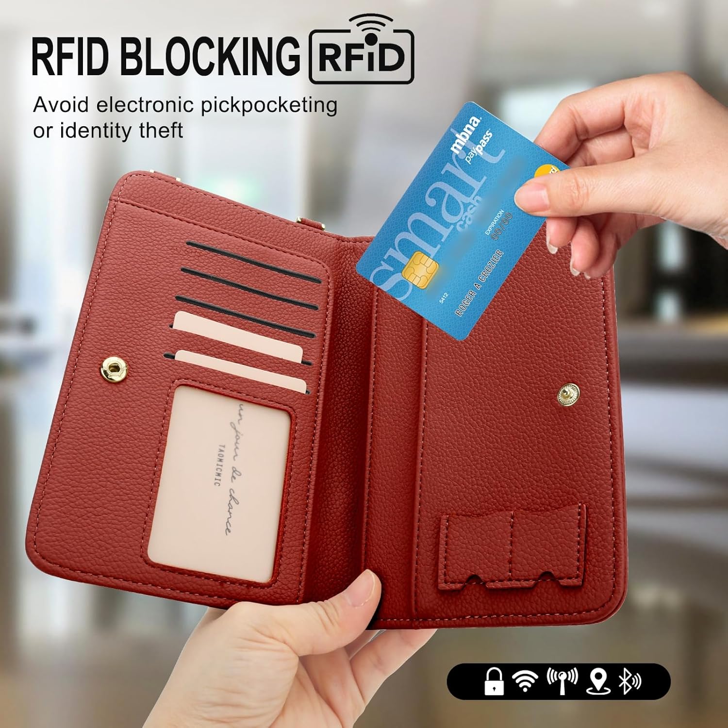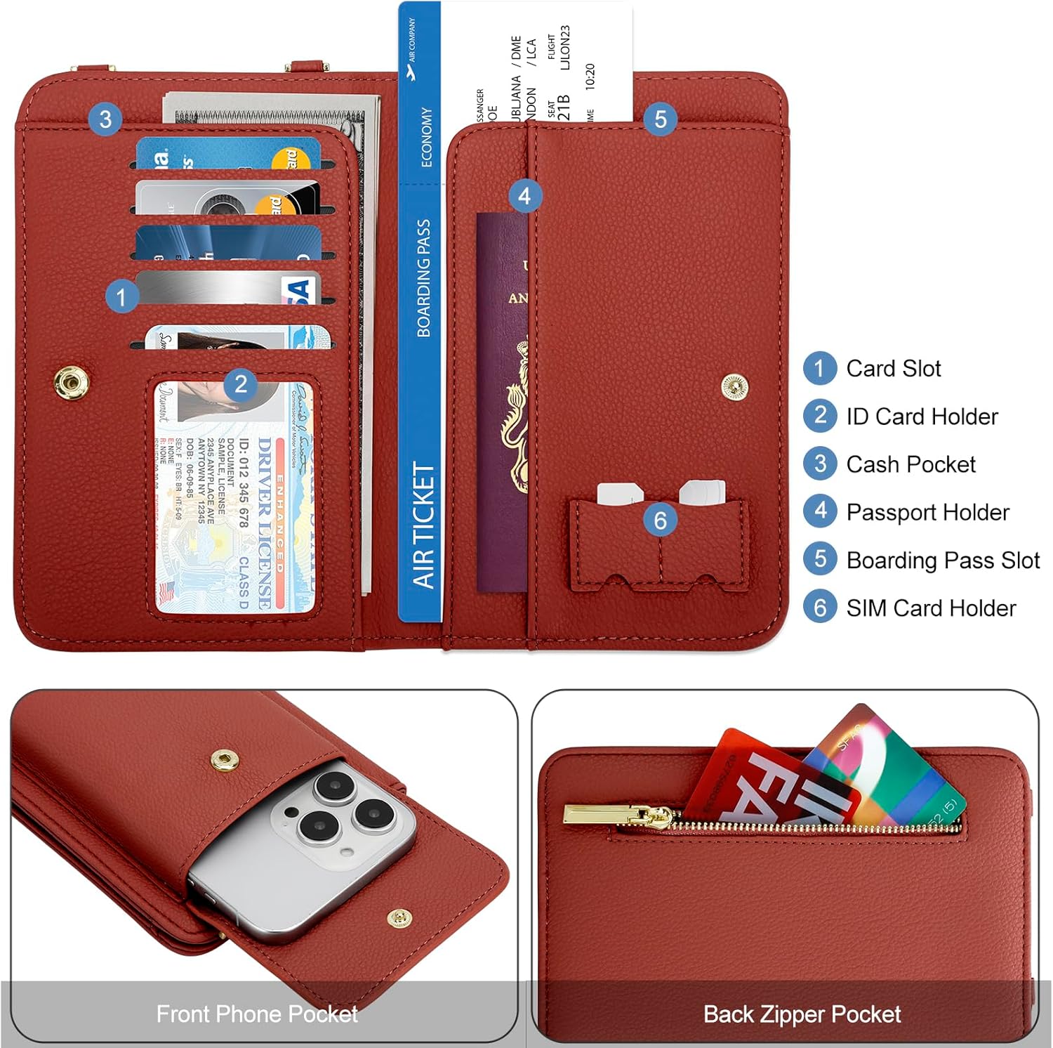 DOB SECHS Leather Passport Wallet Crossbody Phone Bag, RFID Blocking Passport Holder Credit Cards Case for Women