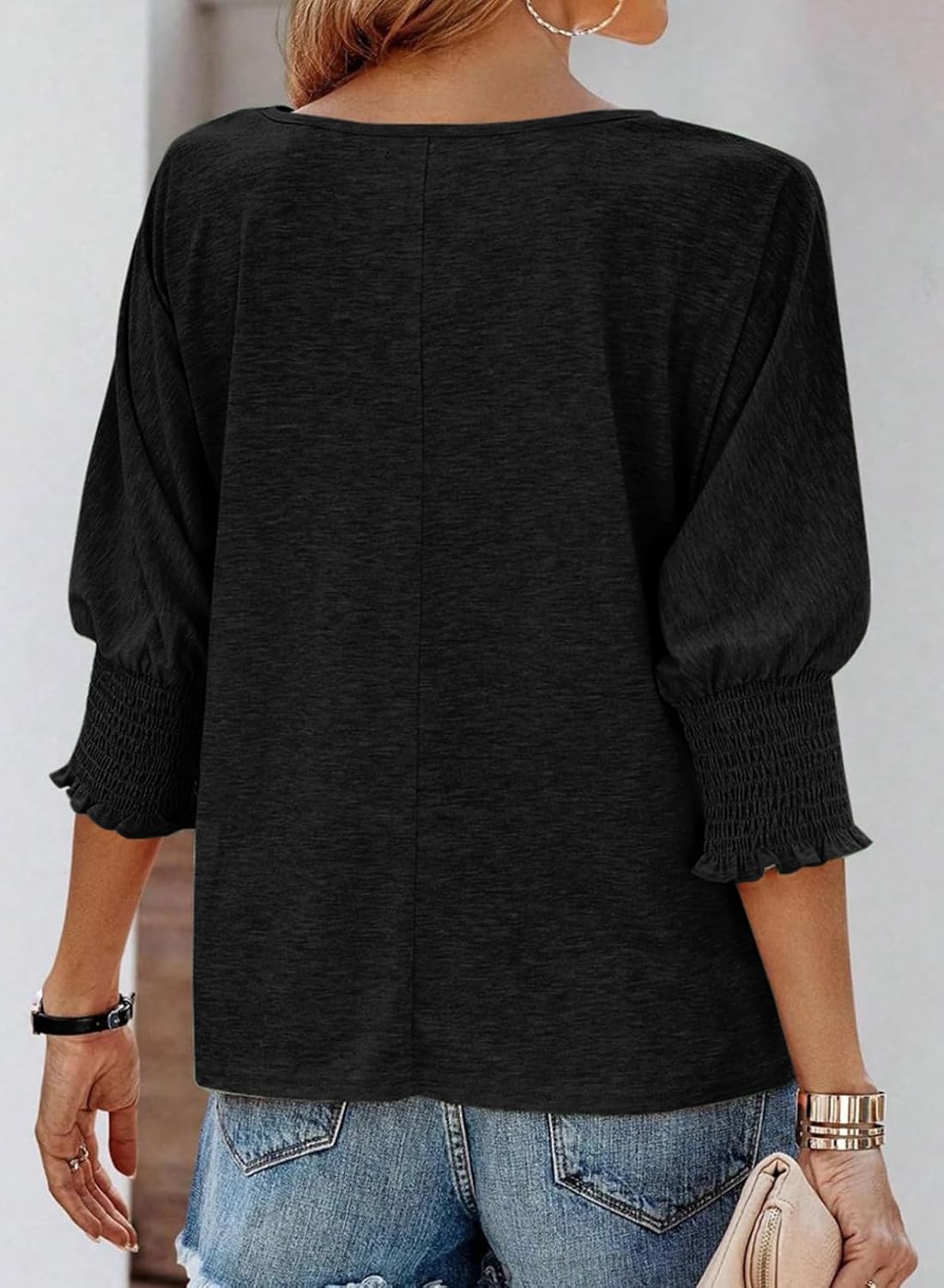 Dokotoo Women’s 2024 Fashion Tops 3/4 Sleeve T-Shirts Cute Crewneck Basic Business Tees Blouses