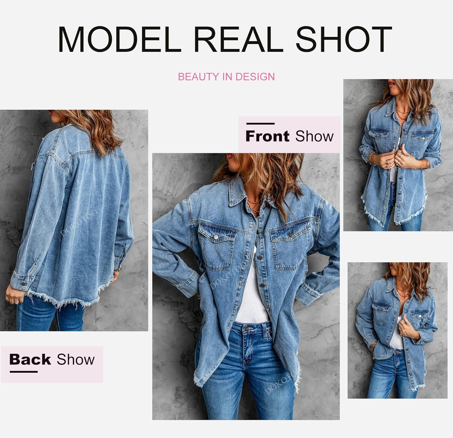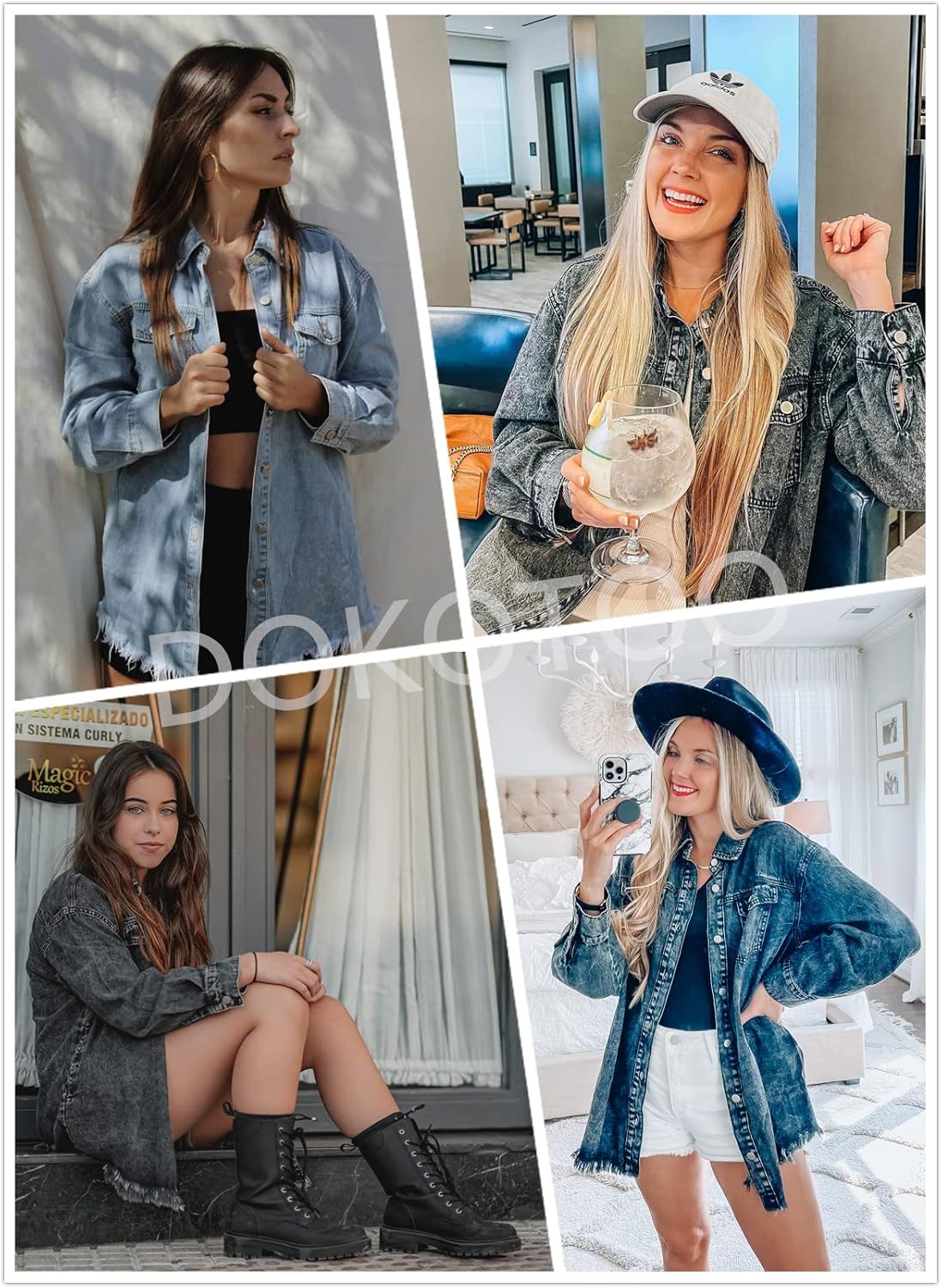 Dokotoo Women’s Oversized Denim Jacket Casual Long Sleeve Denim Shirts Distresse Jean Jacket 2025 Spring Outfits