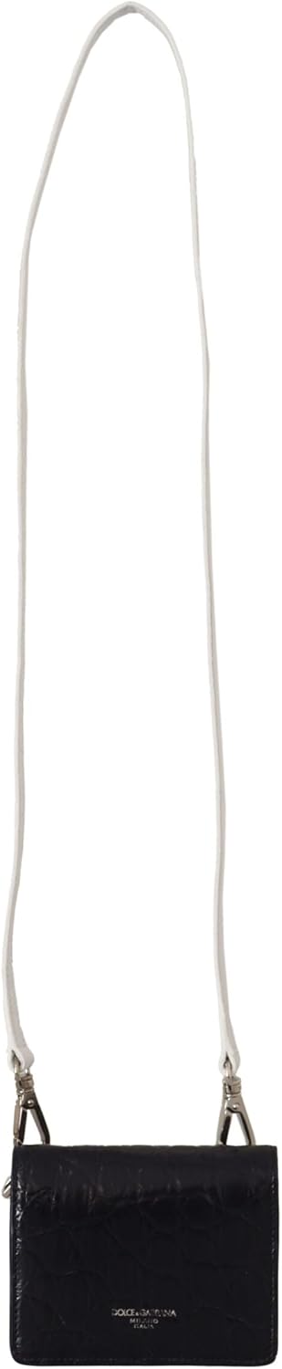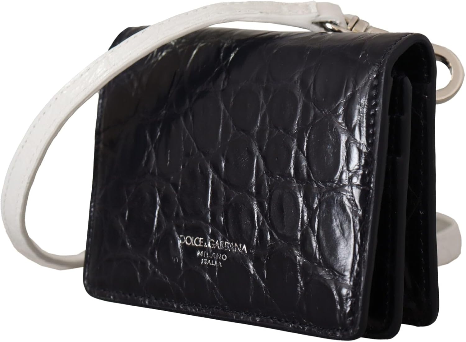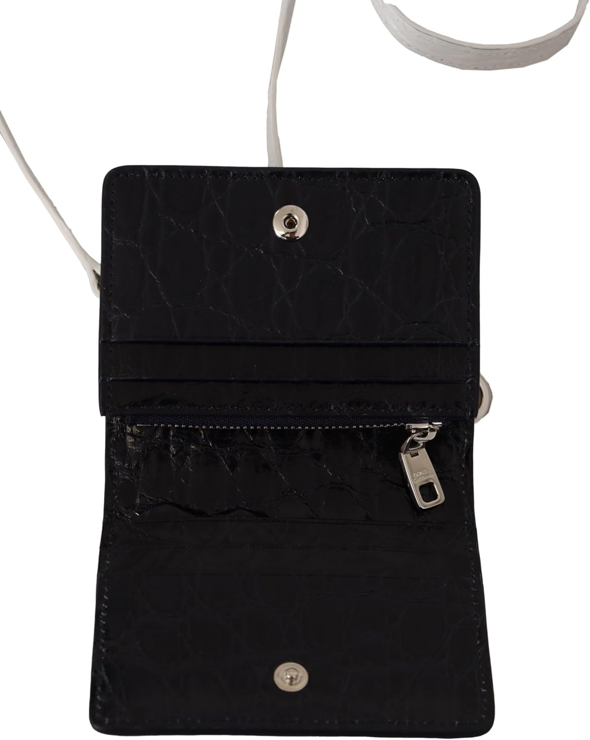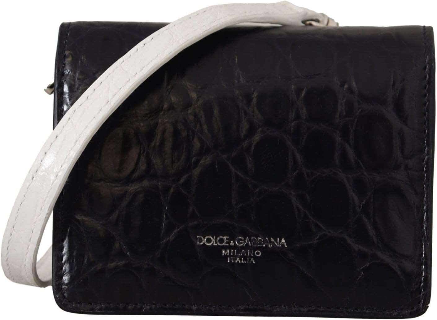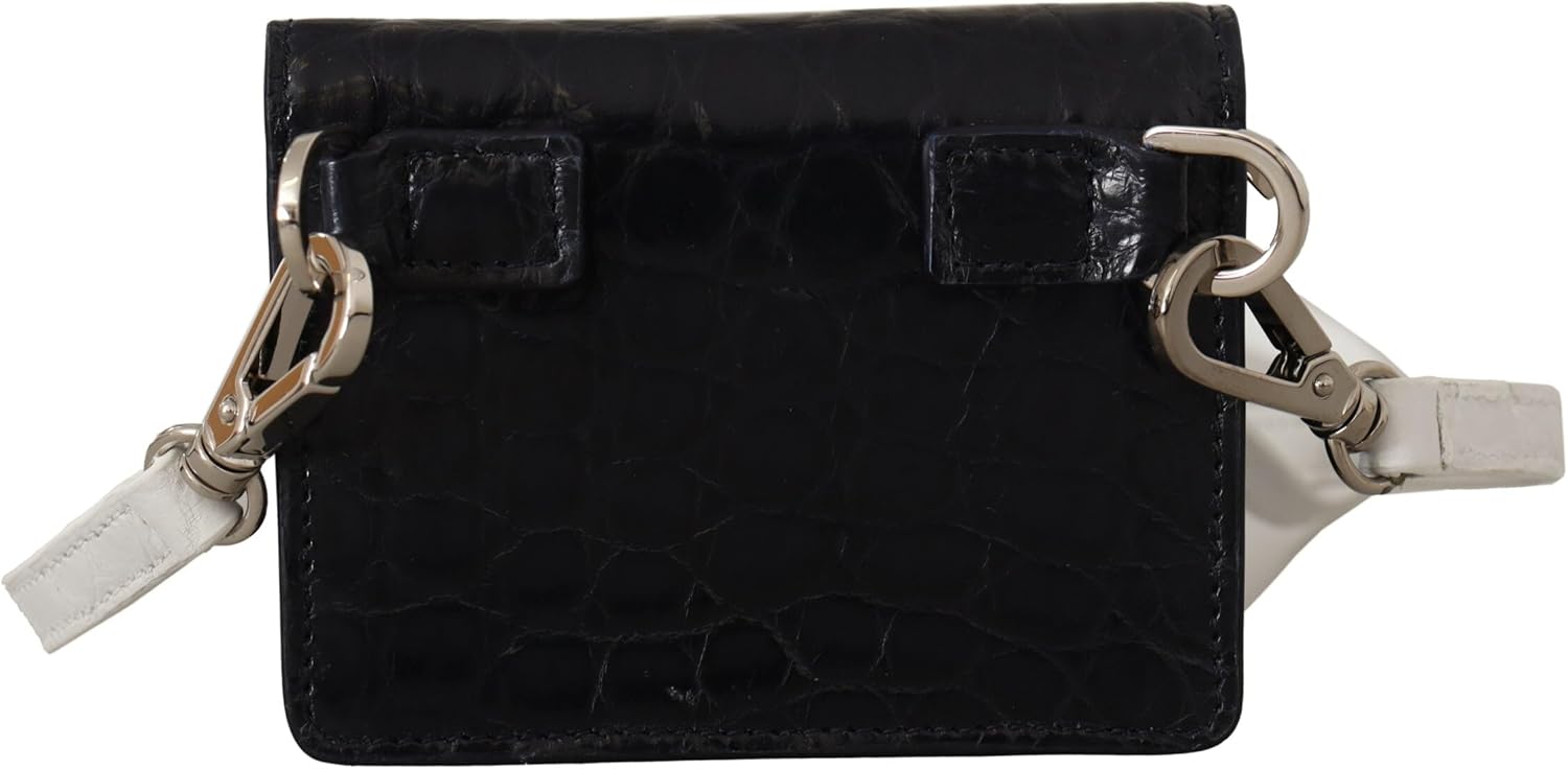 Dolce & Gabbana Blue White Caiman Leather Strap Card Holder Wallet