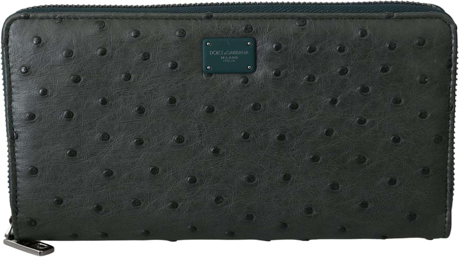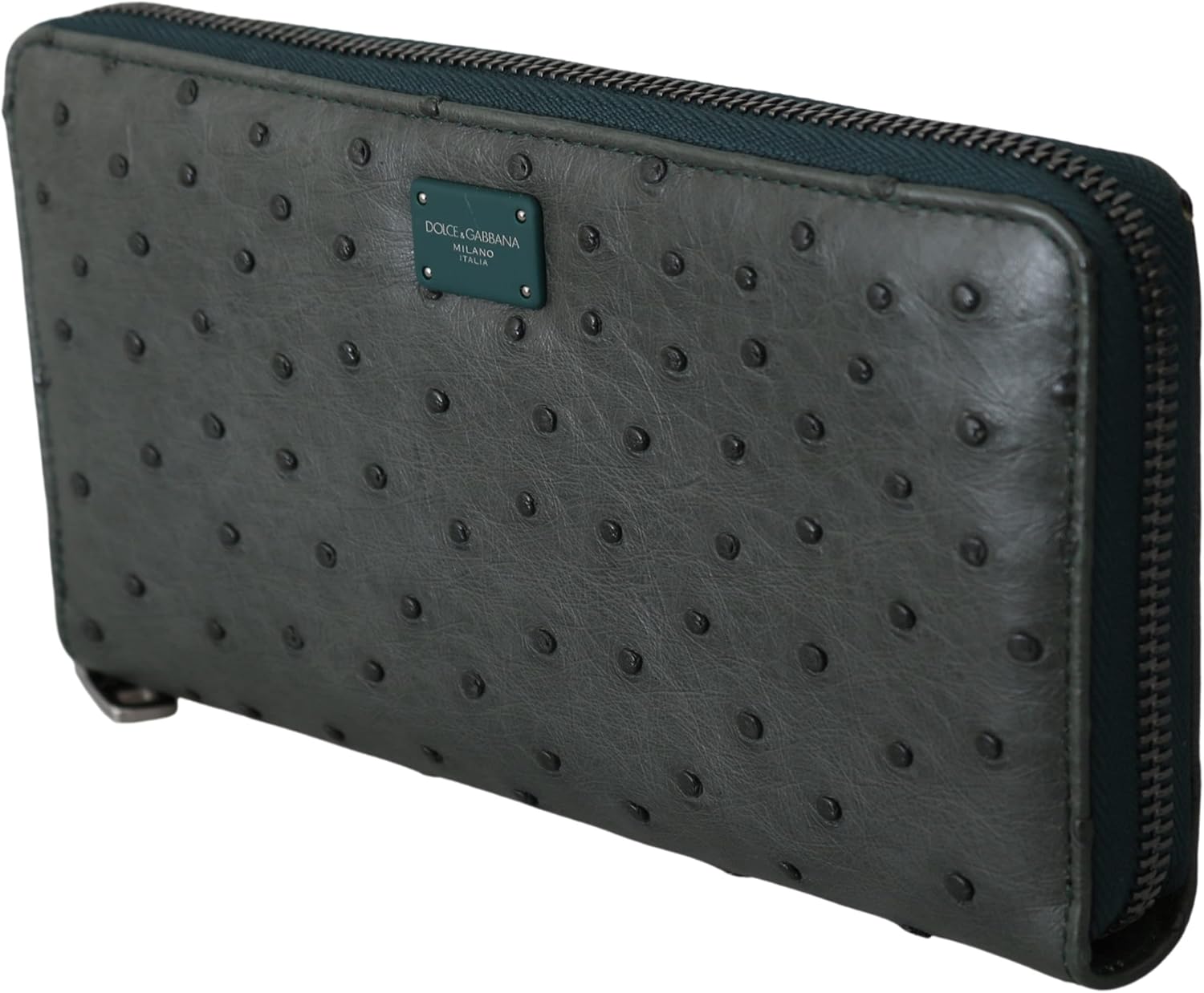Dolce & Gabbana Green Ostrich Leather Continental Mens Clutch Wallet