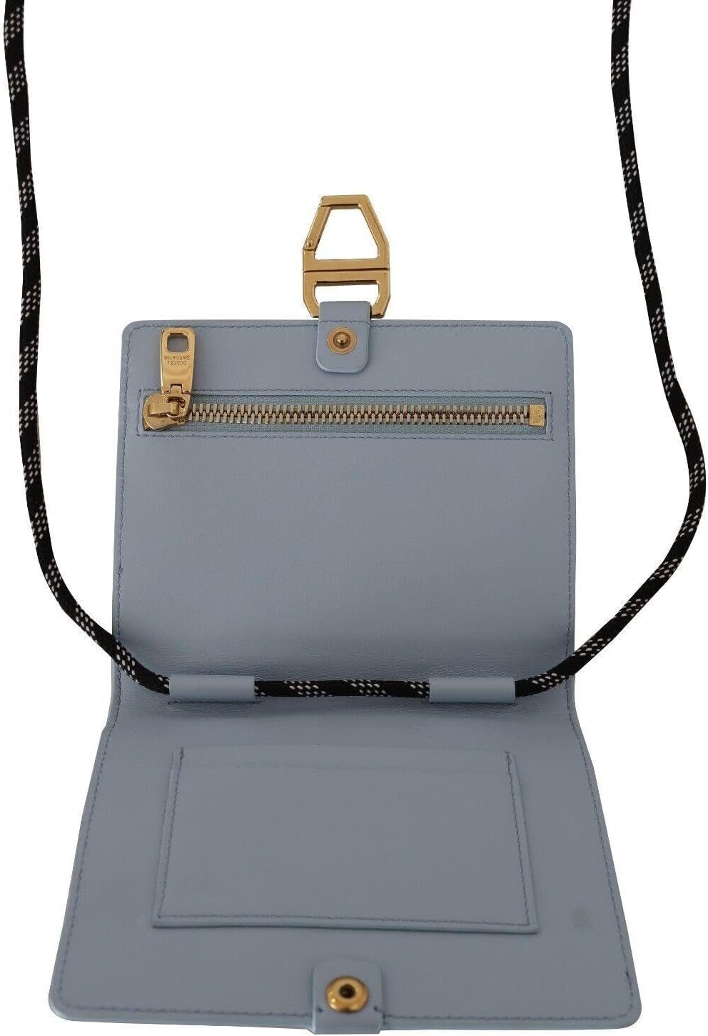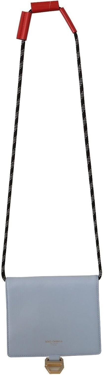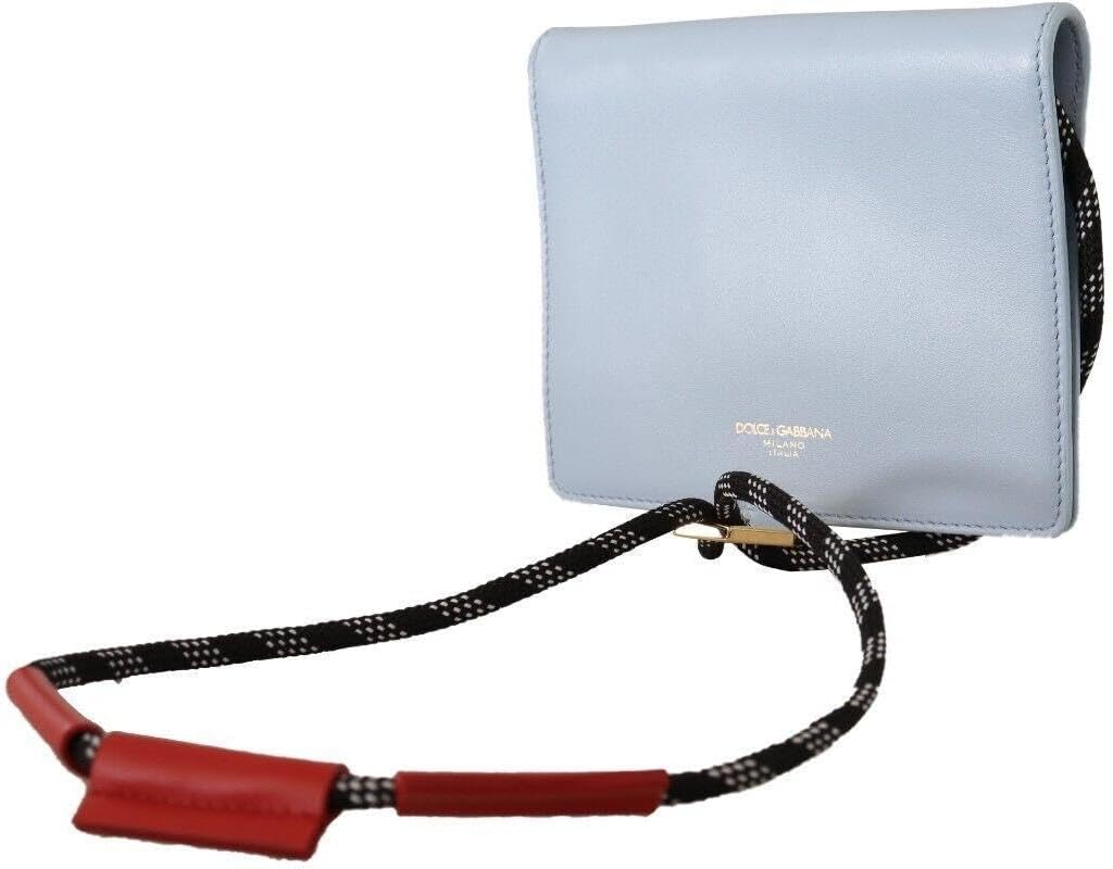 Dolce & Gabbana Light Blue Leather Mini Bifold Sling Purse Wallet