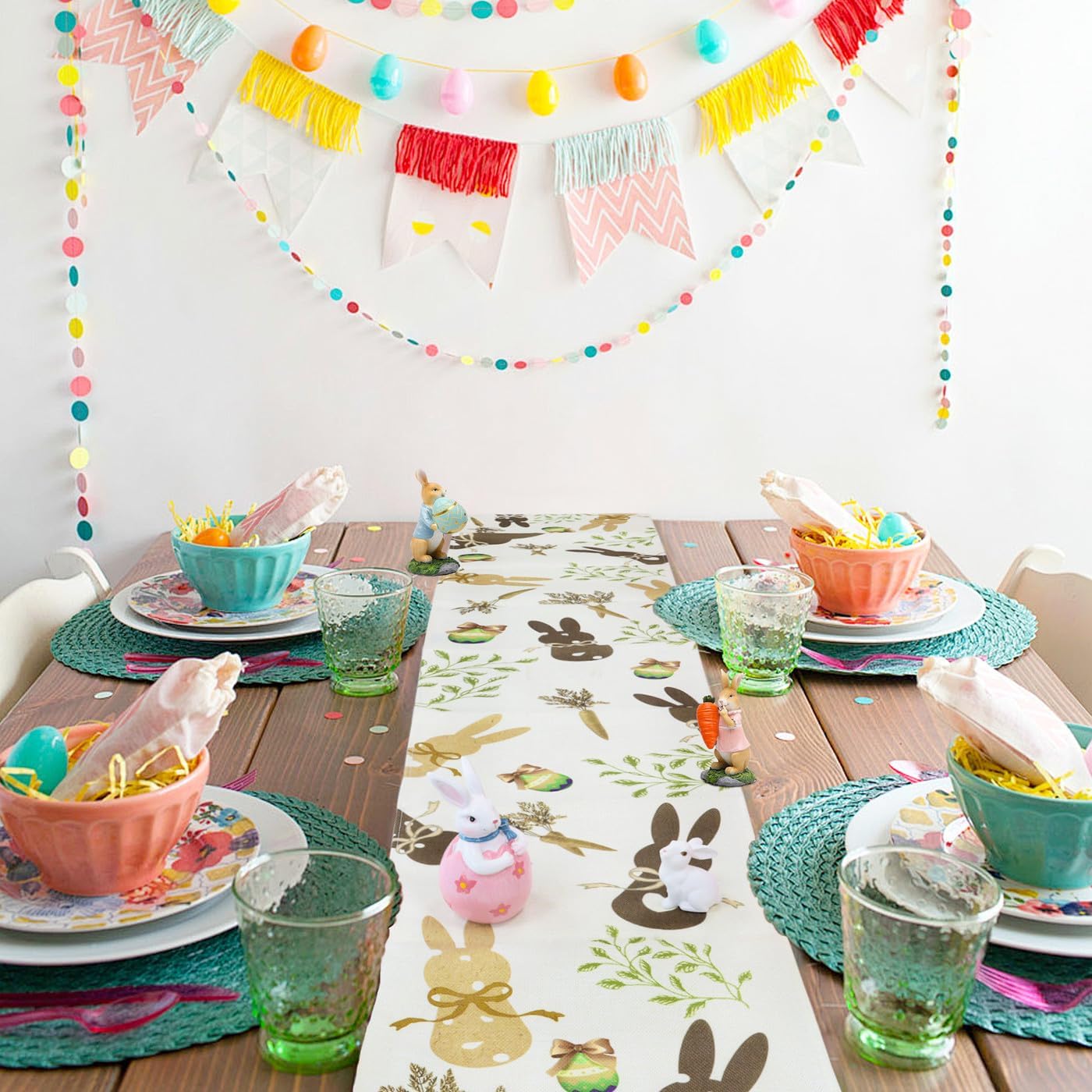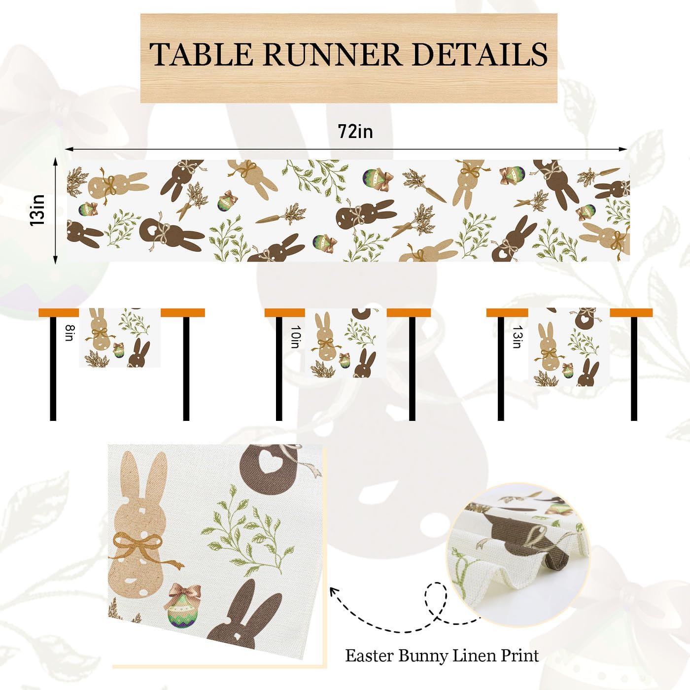 DUQGUHO Easter Table Runner Decorations Spring Bunny Decor Rabbit Carrot 13*73 Inch Linen Spring Easter Decorations for Kitchen Dining Indoor Outdoor Home Party Table Decor