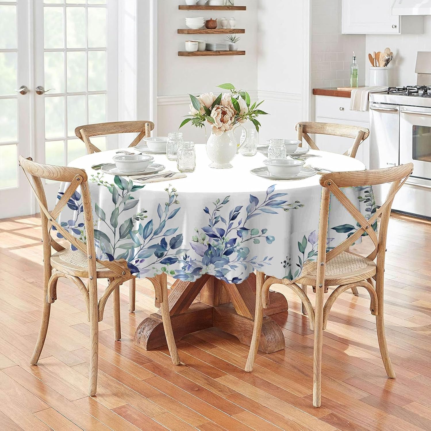 Eikione Kitchen Tablecloth 60 inch Round Boho Tablecloths Polyester Table Cloth for Party Restaurant Banquet Dining Buffet Table Picnic Decorations