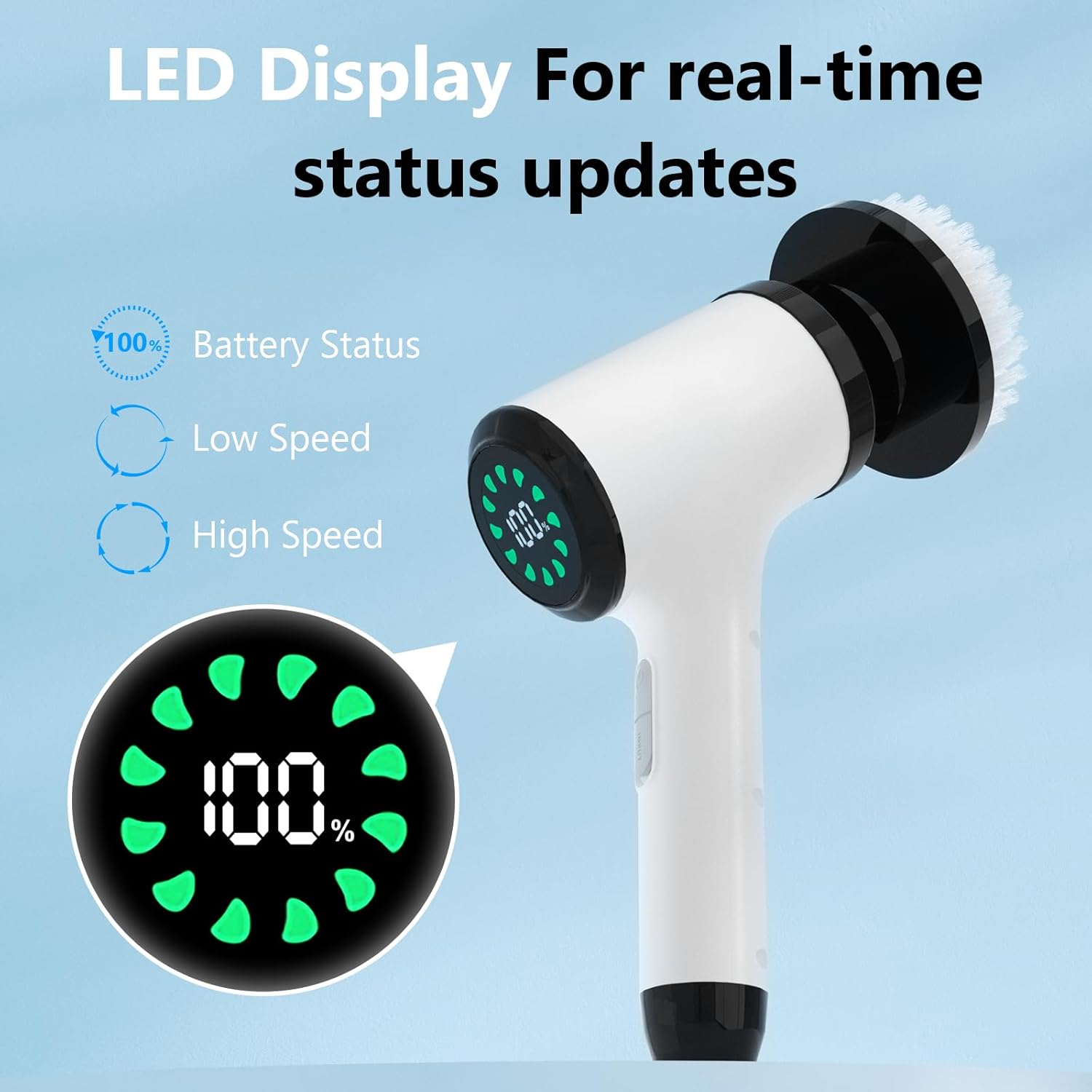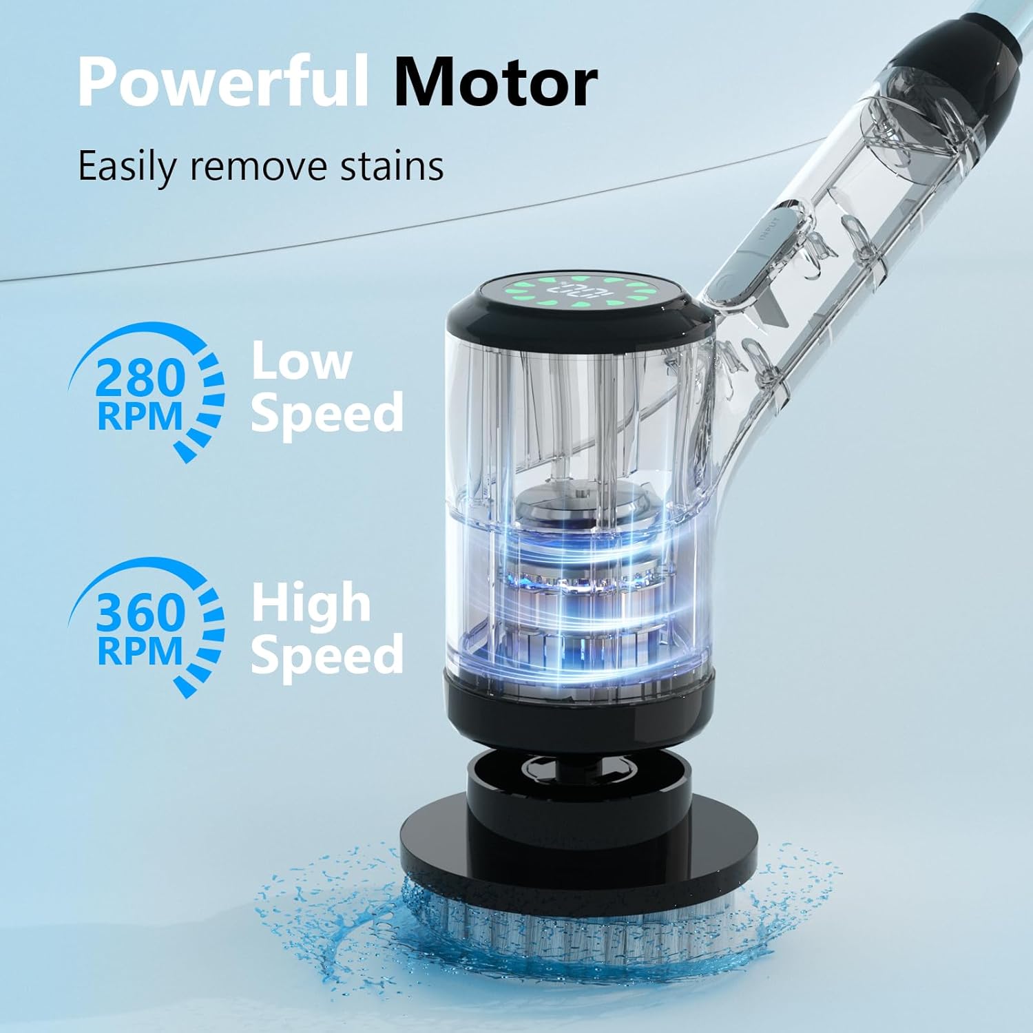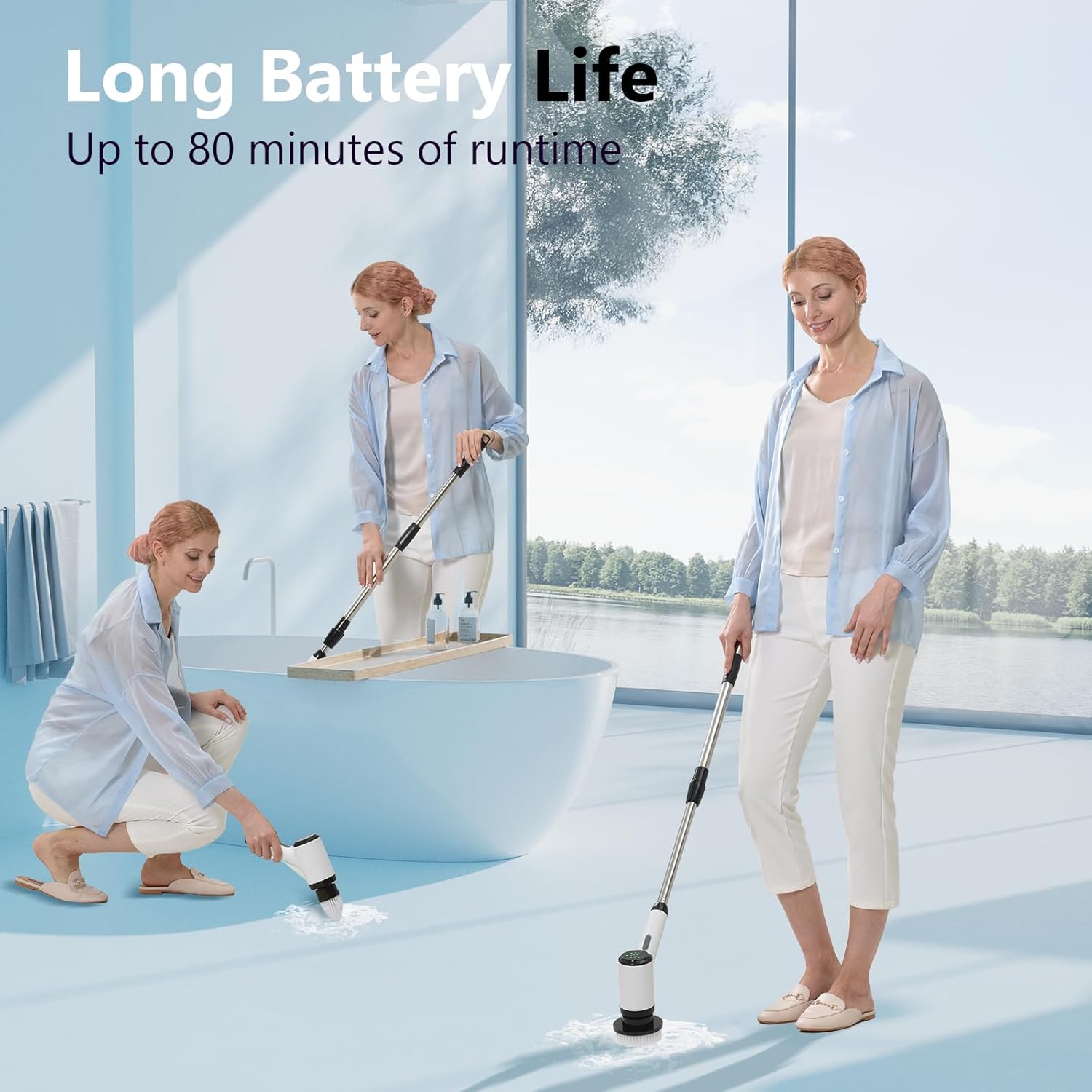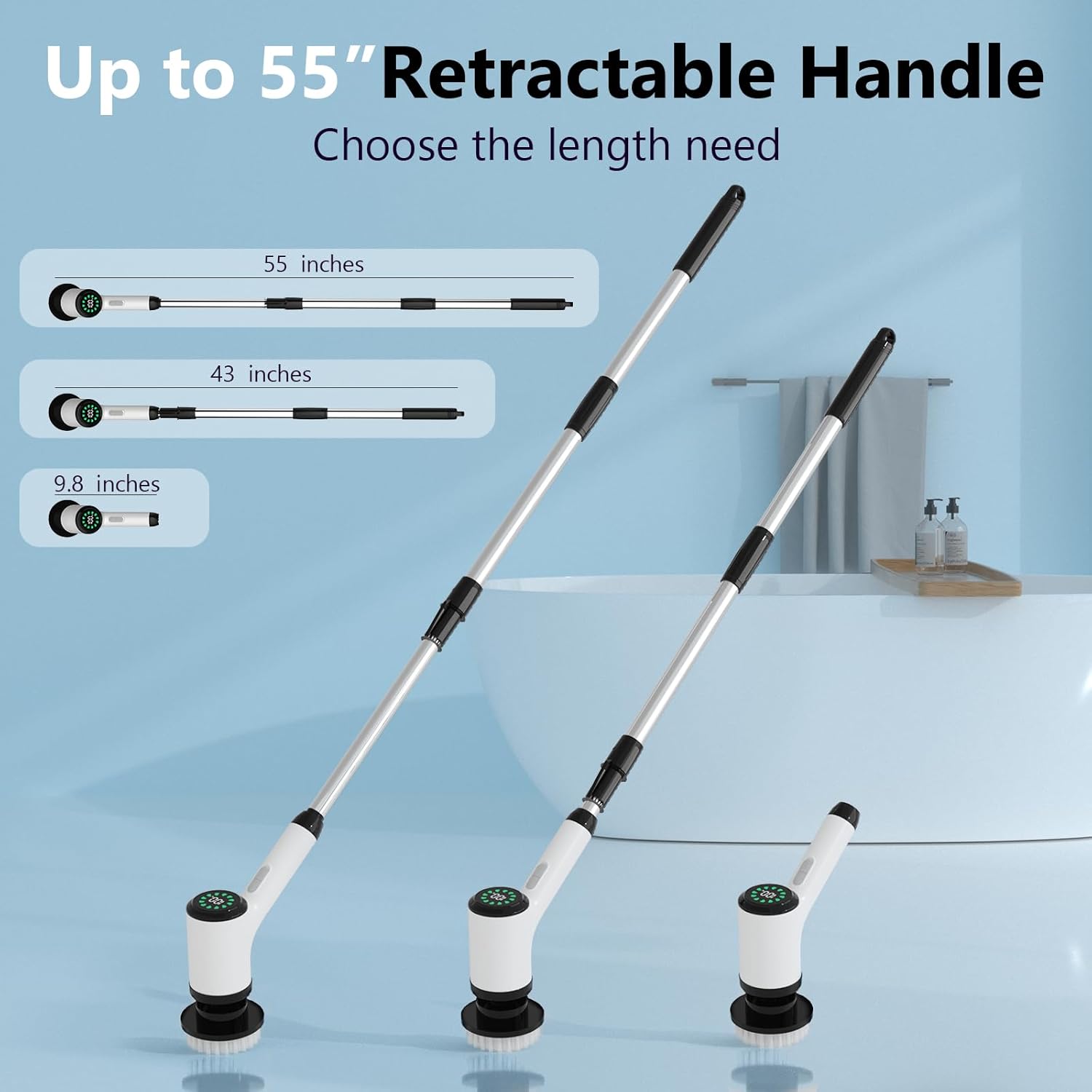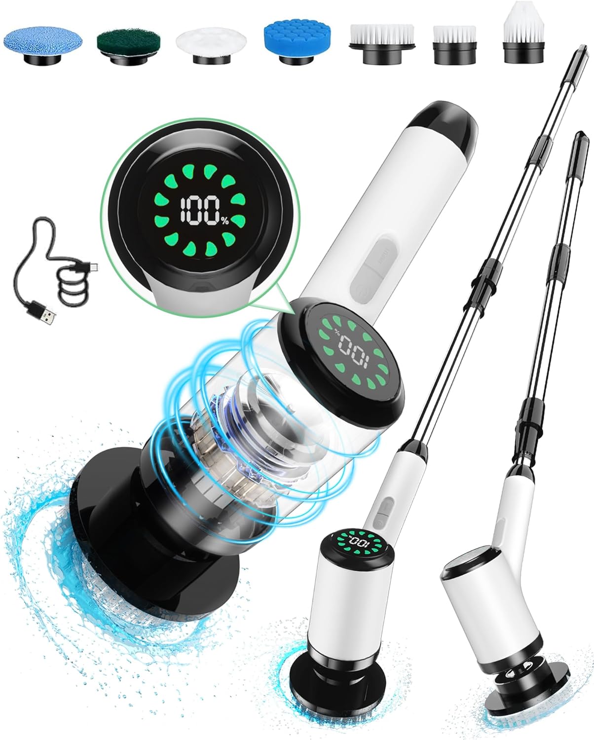 About this itemnAll-new Upgraded Motor: Utilizing the 2025 edition of the fully upgraded motor, it boasts enhanced power, reduced noise, a built-in circuit protection system, ease of use while enhancing safety, and possesses an ultra-long service life.nLong-Lasting Battery for Comprehensive Cleaning: The powerful rechargeable battery provides up to 80 minutes of continuous use, allowing you to move from room to room without the hassle of cords or constant recharging. Enjoy the freedom of a cordless cleaning experience.nComprehensive Set of 8 Replaceable Brush Heads: Equipped with 8 different brush heads, this scrubber is designed to meet all your cleaning demands. From large flat brushes for floors to pointed brushes for tight corners, each head is tailored for specific surfaces and tasks.nErgonomic Handle with Adjustable Length: The scrubber features an adjustable handle that extends to three different lengths, making it easy to clean both high and low areas without bending or straining. This is ideal for users with limited mobility or those looking to minimize physical exertion.nIPX6 Waterproof for Safe Use in Wet Areas: Designed to withstand splashes and moisture, this scrubber is perfect for use in bathrooms and kitchens. The waterproof construction ensures safe operation, while the durable build guarantees long-lasting performance even in damp conditions.