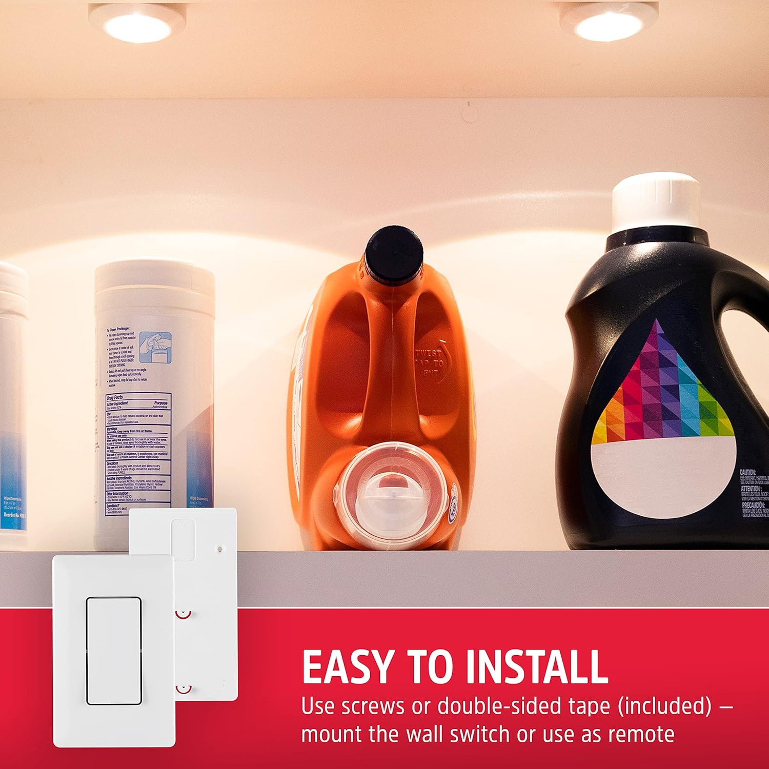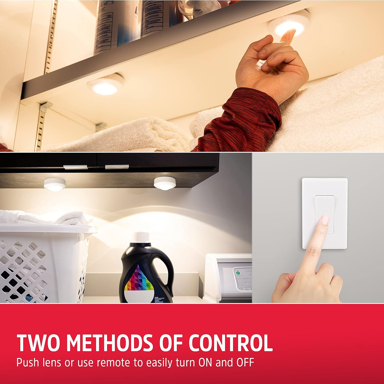 Energizer LED Puck Lights, Wall Switch Remote, 2 Pack, Battery Operated, Under Cabinet Lighting, Wireless Lights, 50 ft Range, Perfect for Kitchen Under Cabinet, Laundry Room, and More, 58822-T1