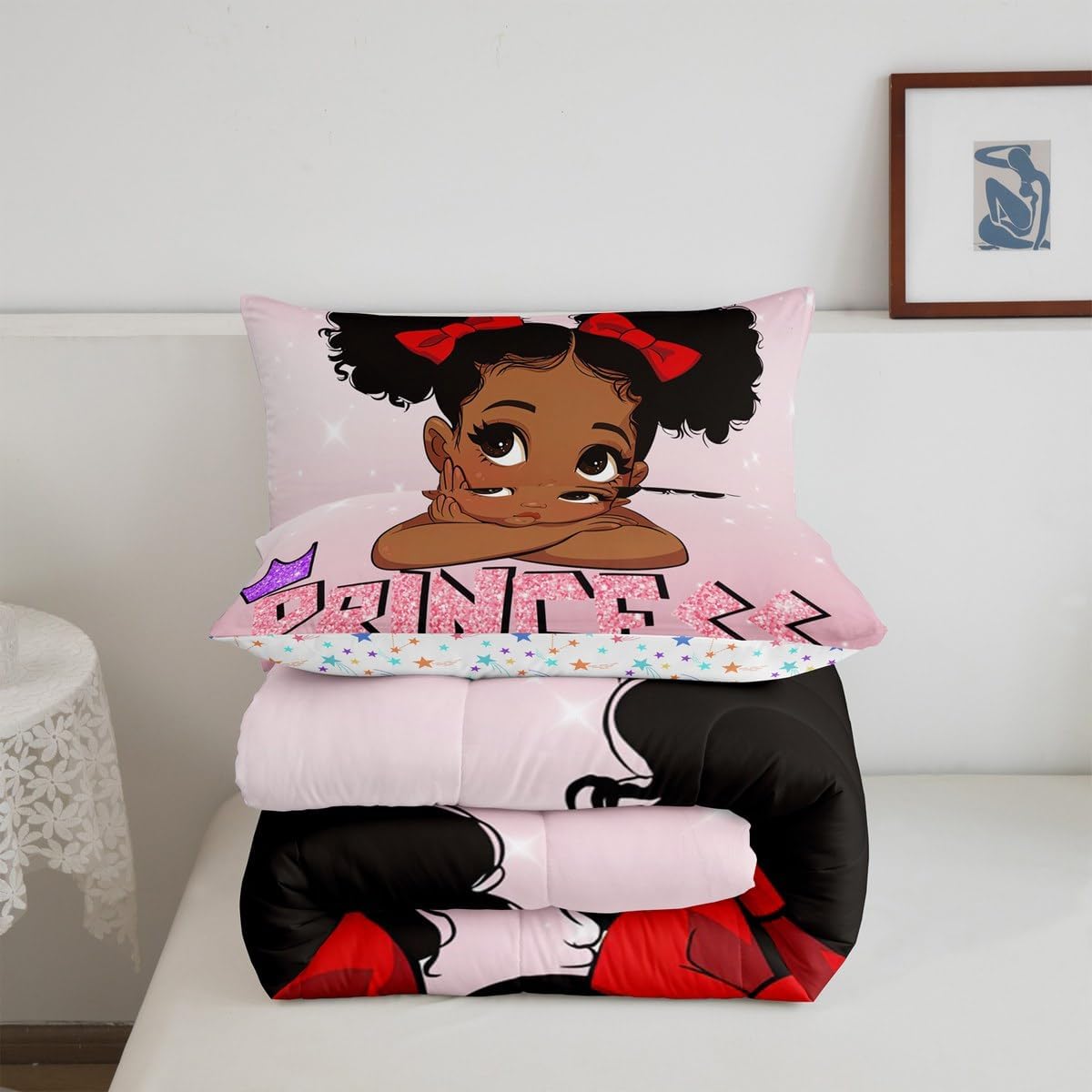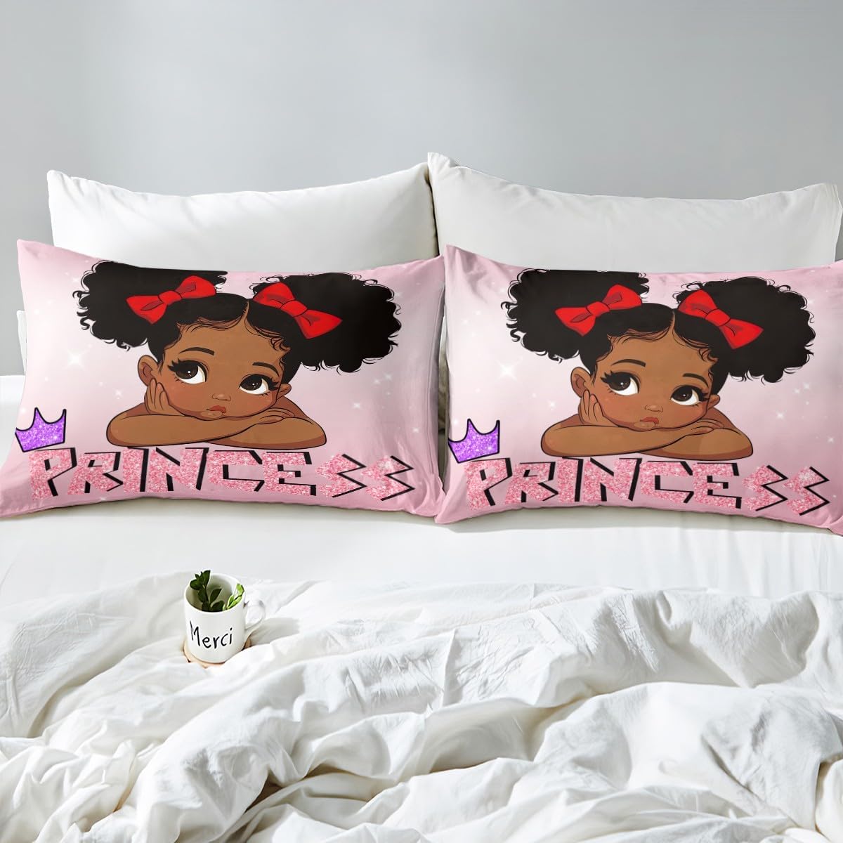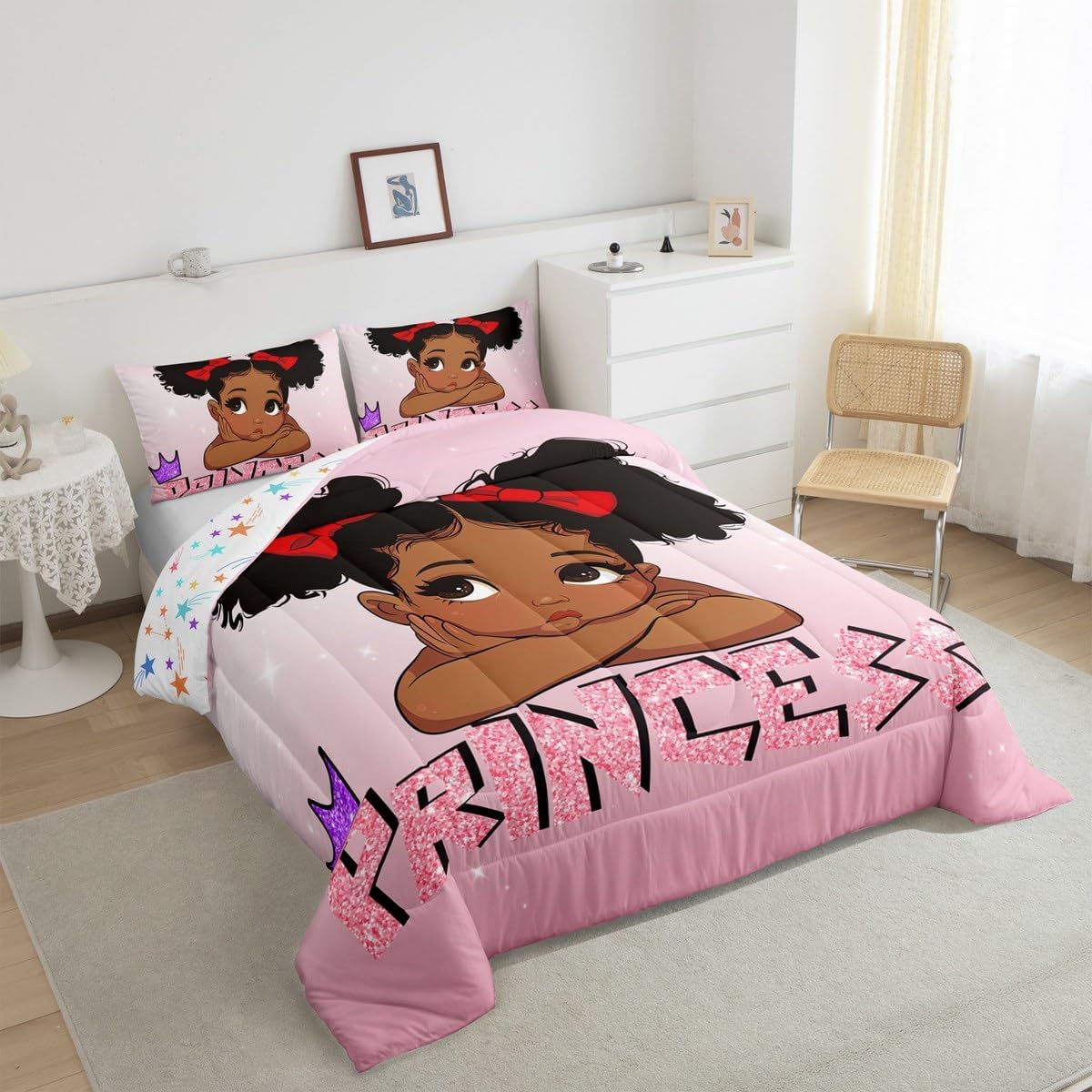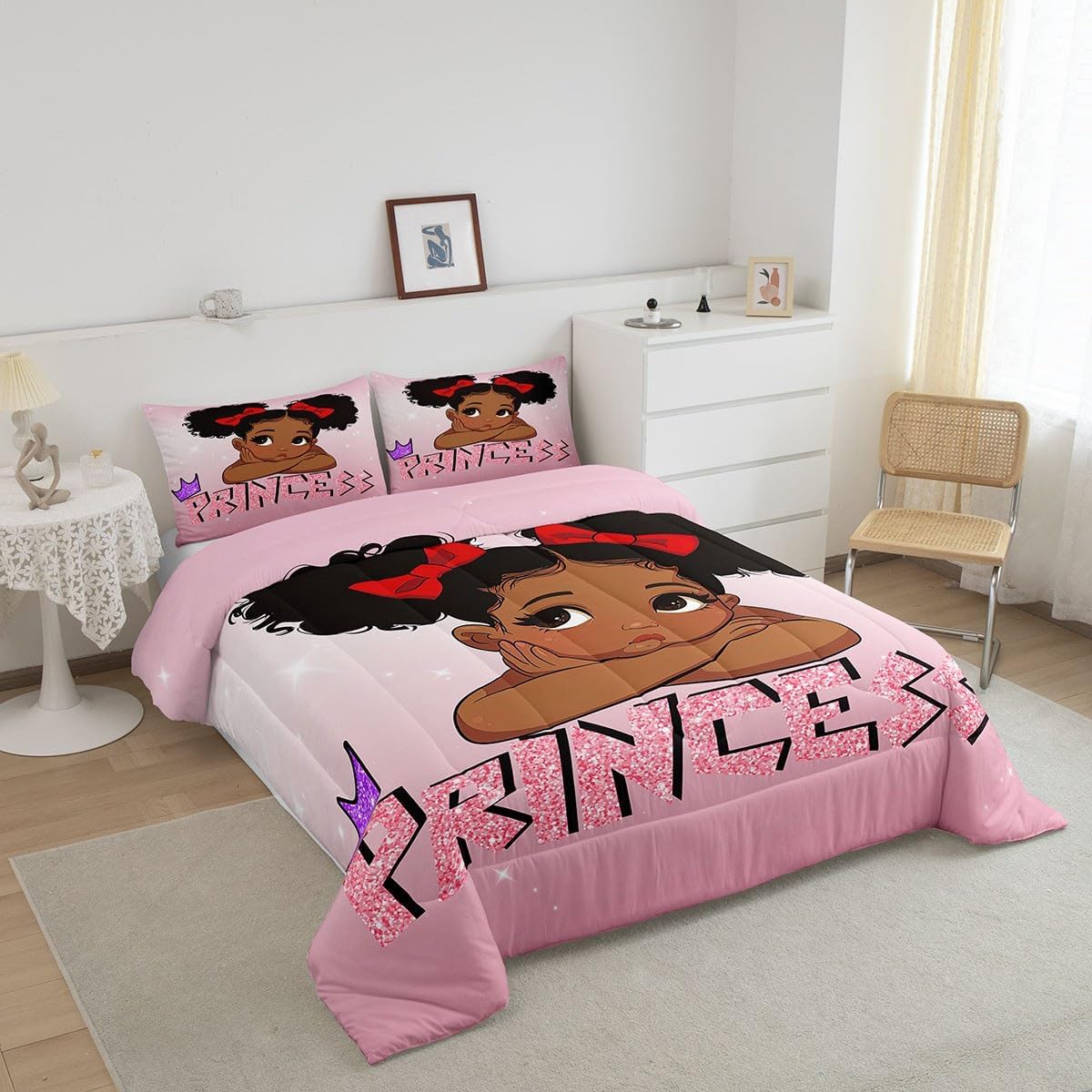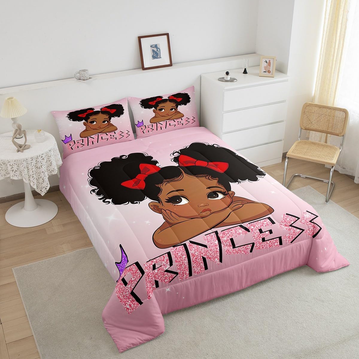 Erosebridal Black Girls Magical Bedding Set Twin, African Style American Girl Comforter Set for Kids Women Bedroom Decor, Afro Princess Down Comforter Cute Girly Magical Quilt, 1 Pillow Case, Pink