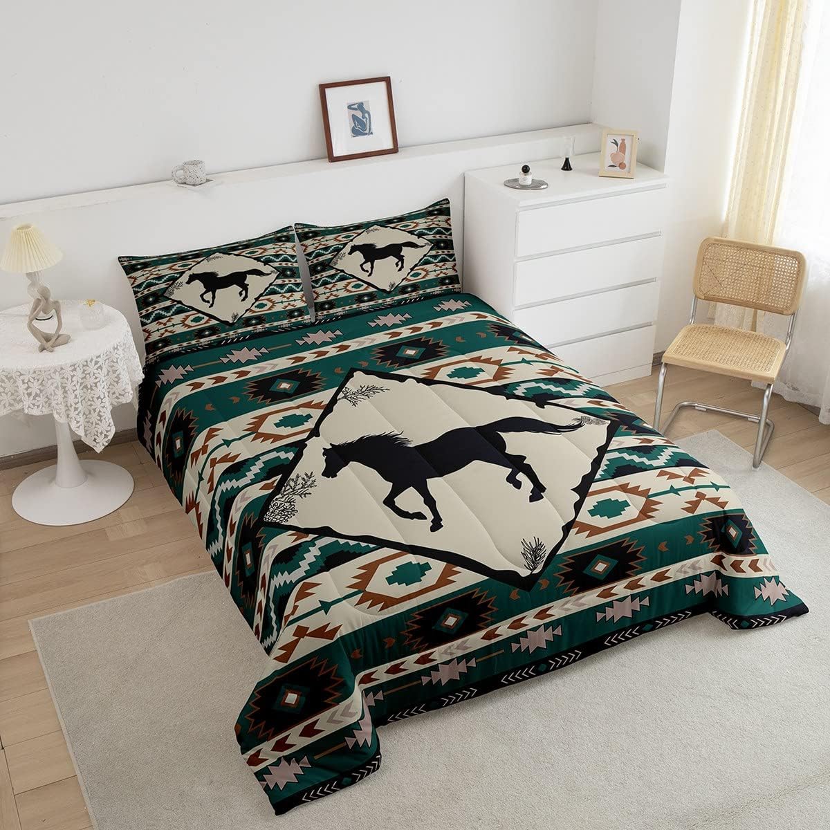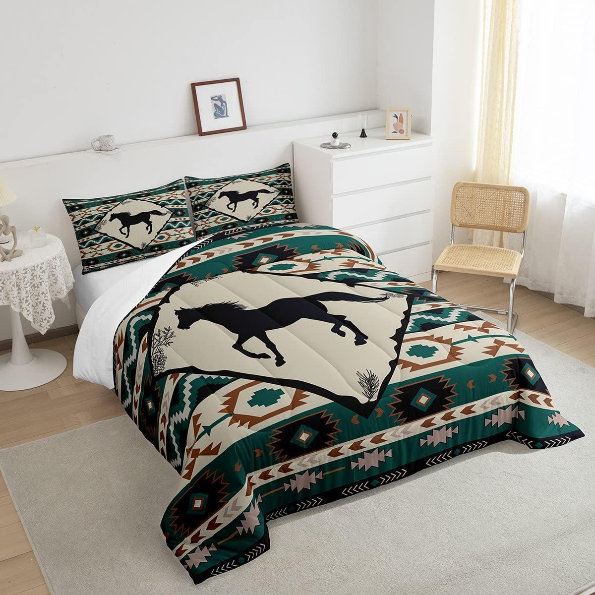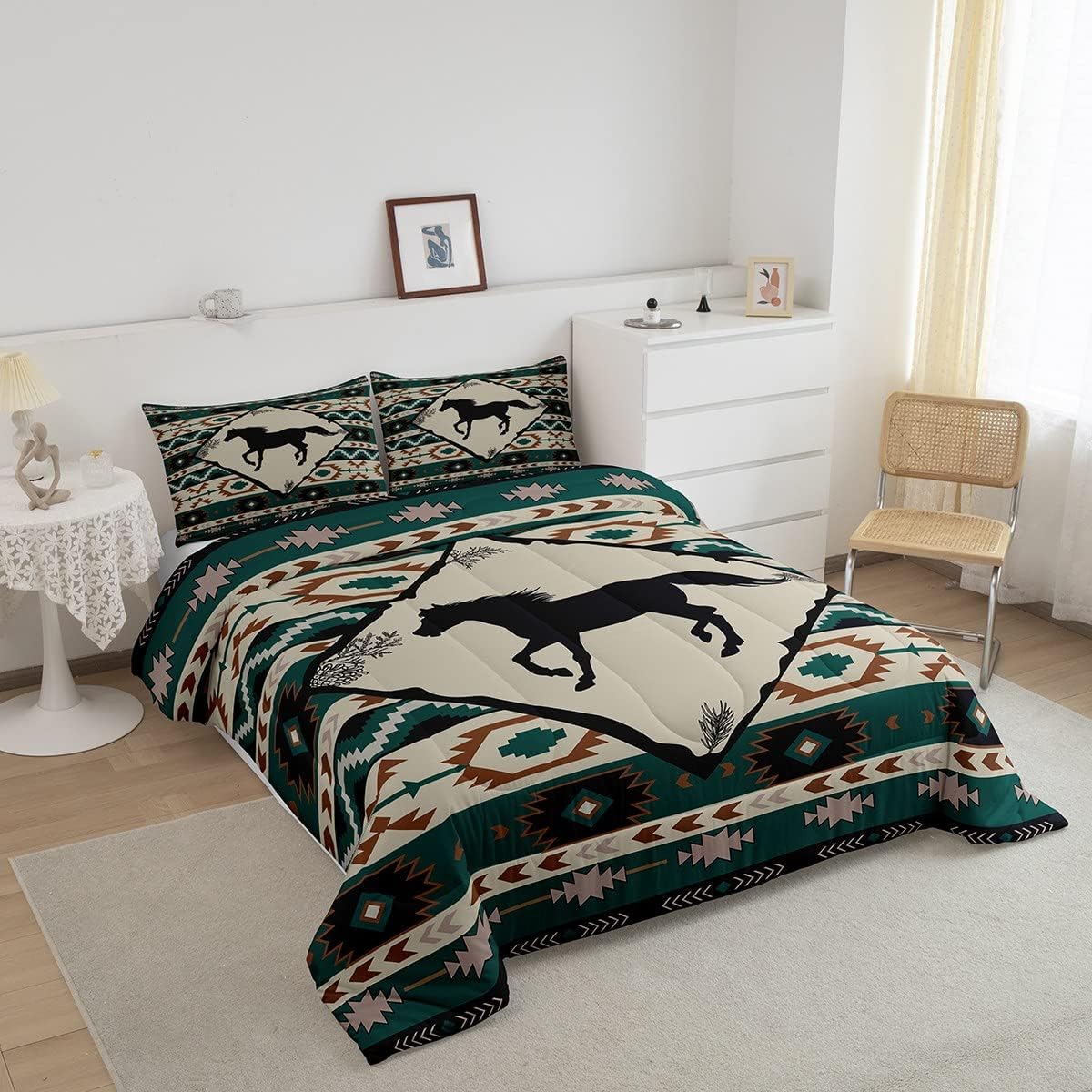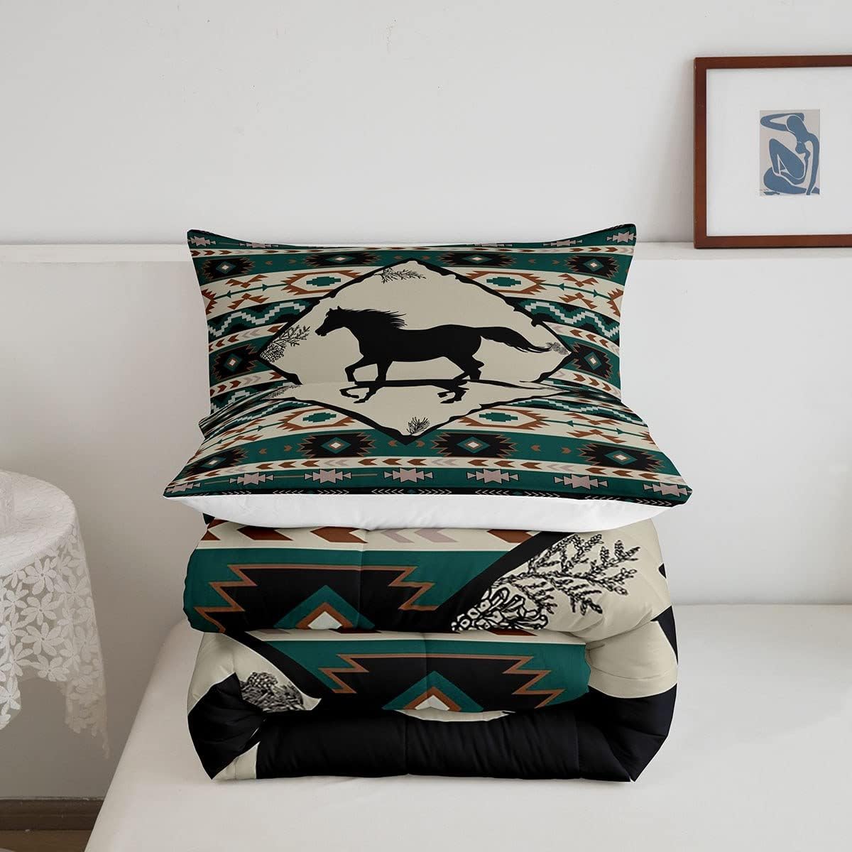 Erosebridal Galloping Horse Comforter Set for Cowboy Cowgirl,Western Aztec Bedding,Native Southwest Bedding Comforter Sets Twin,Farmhouse Animal Duvet Insert with 1 Pillow Sham Lightweight