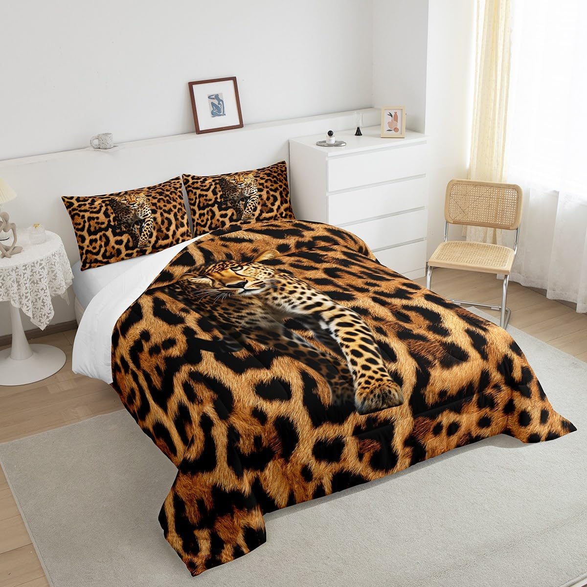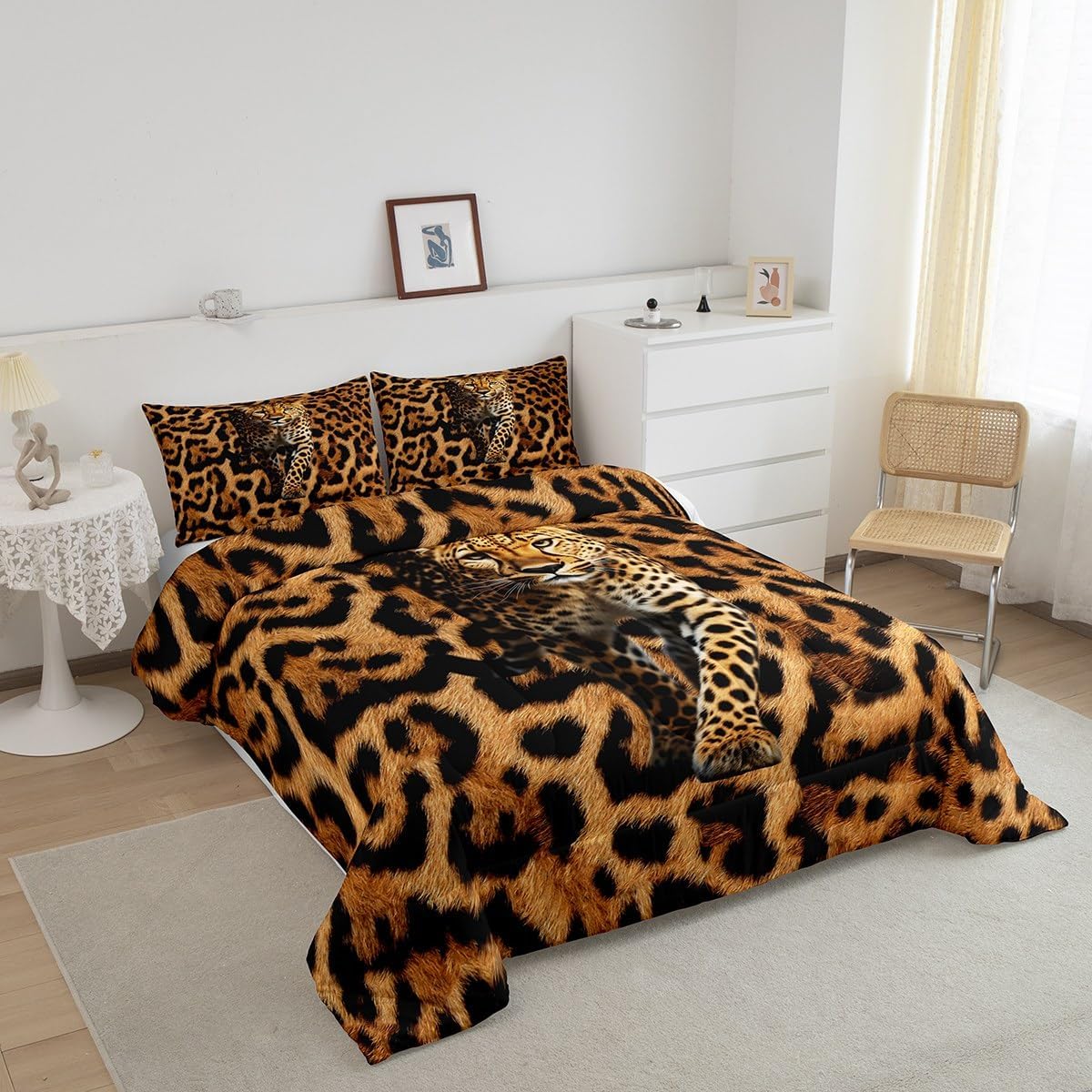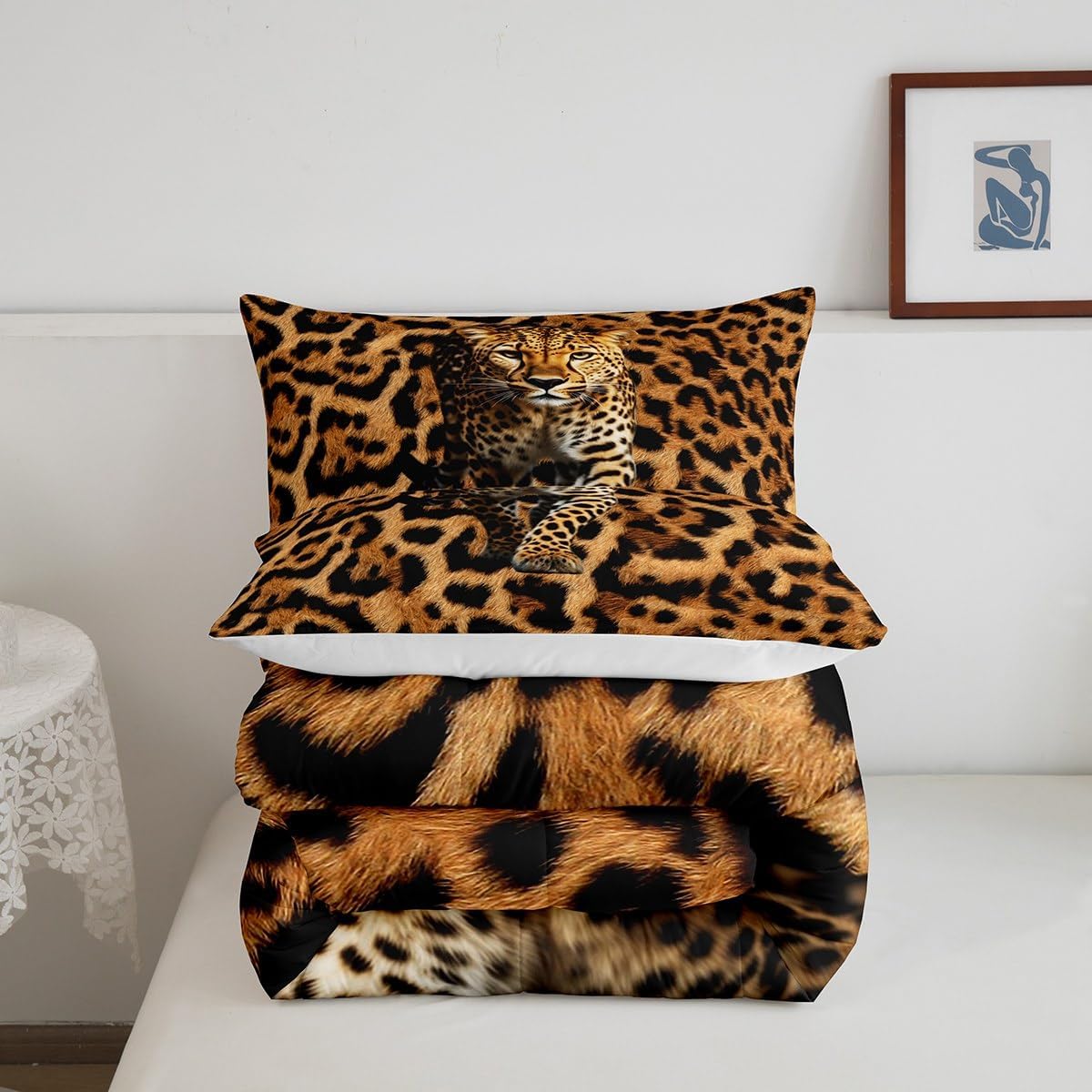 Erosebridal Leopard 3D Bedding Sets Jaguar Cheetah Print Comforter Set Twin, Wild Animal Faux Fur Bedding Comforter Sets Brown Black Wildlife Skin Quilt with 1 Pillow Case