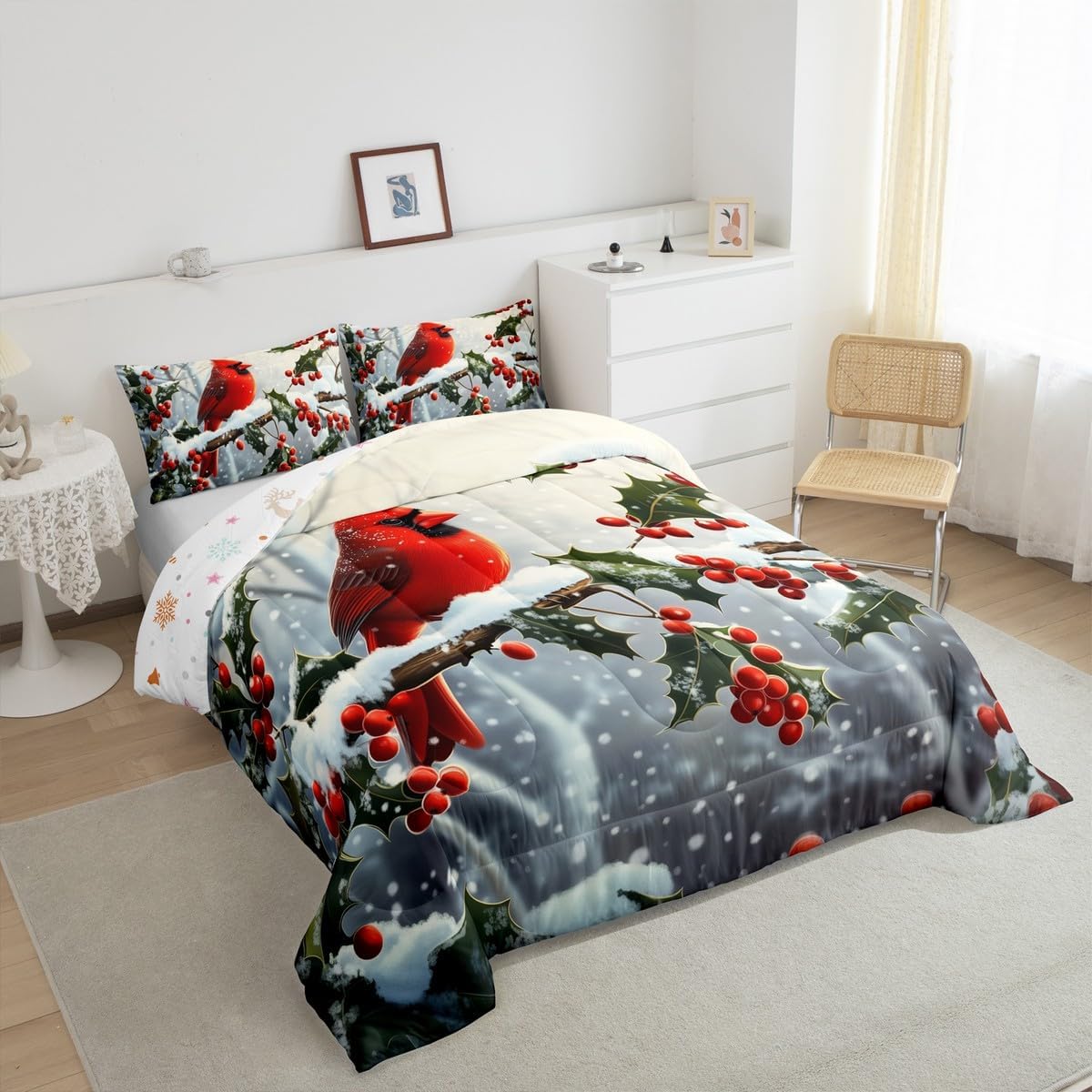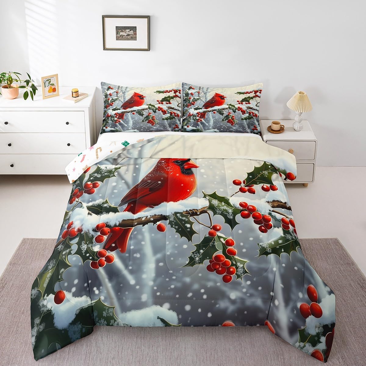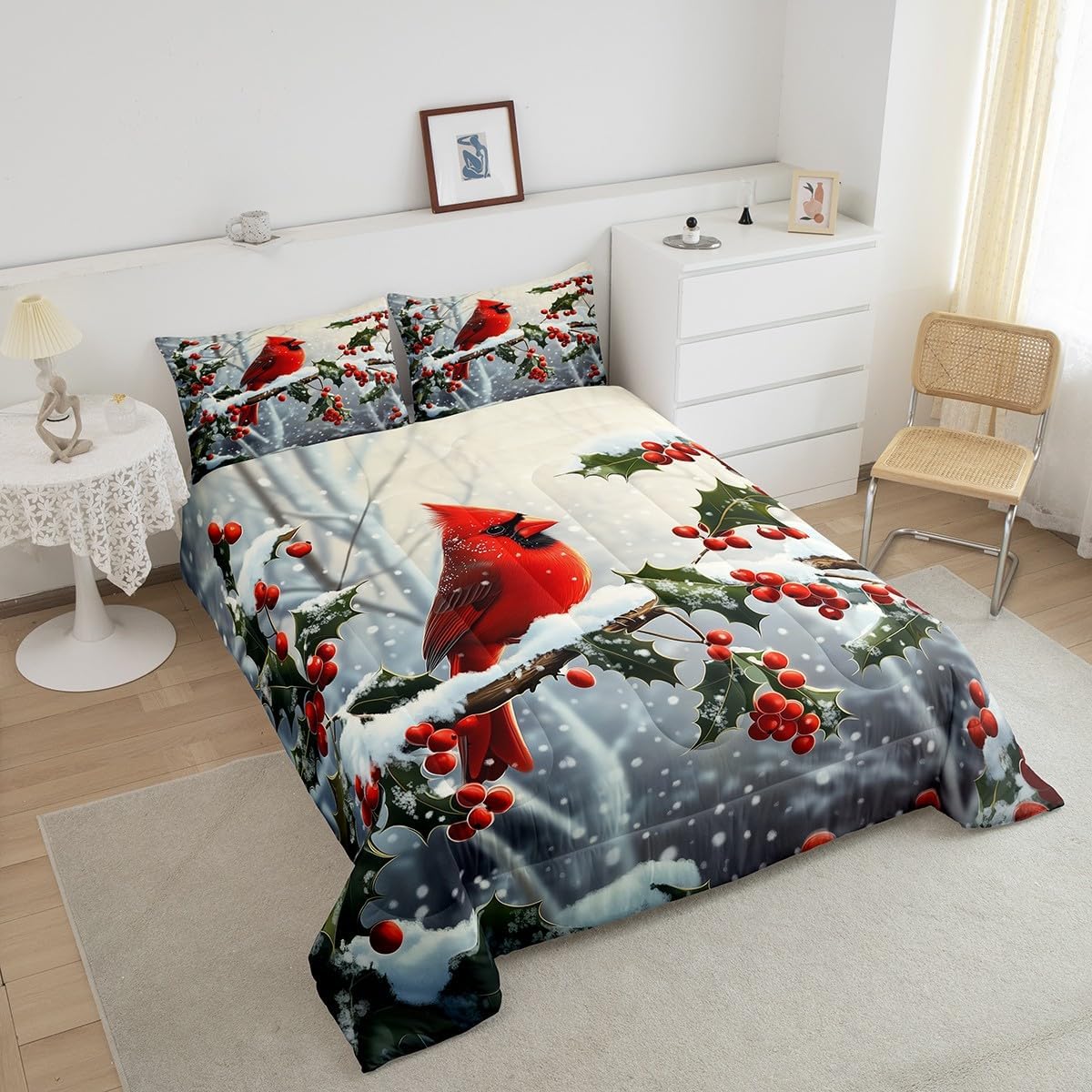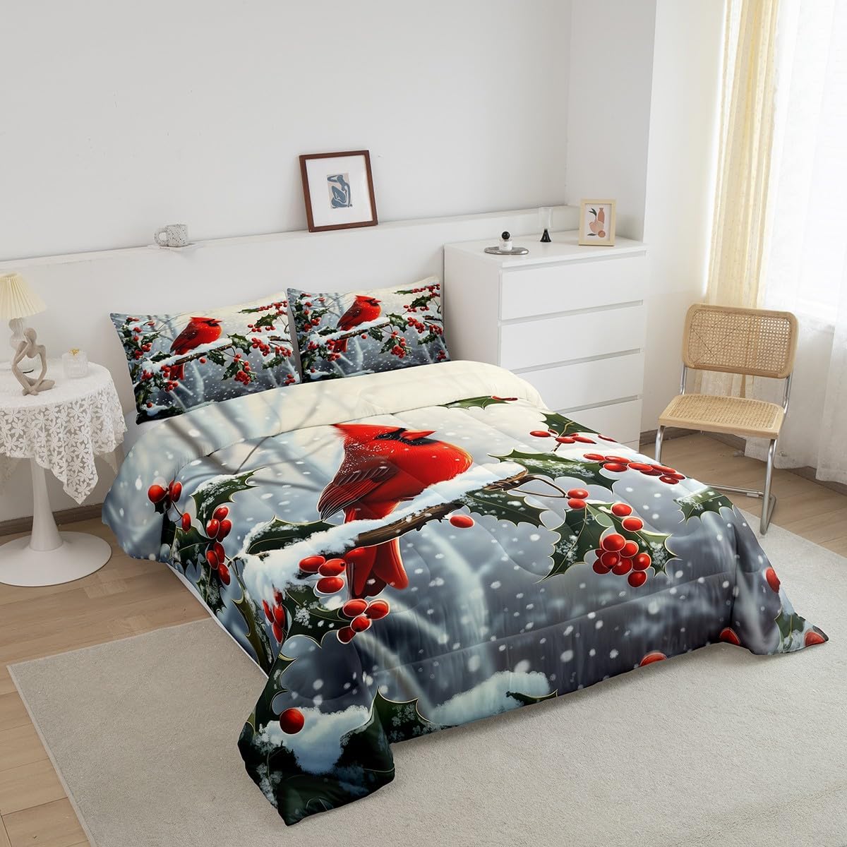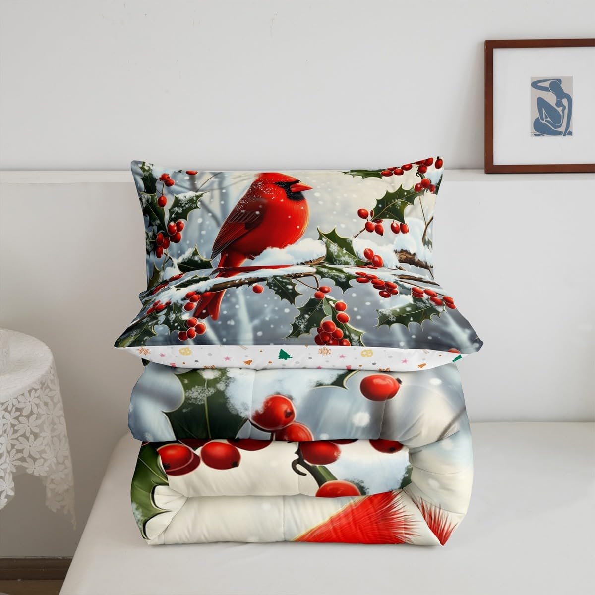 Erosebridal Red Cardinal Bedding Set Twin Winter Christmas Red Cardinal Bedding Comforter Sets for Kids Adults Room,Xmas Branch Snowflake Comforter Set Christmas Holiday Tree Leaves Quilt Duvet