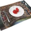 About this itemnOutstanding Heat Protection: Heat Resistant Placemats made from thick polyester fabric provide exceptional heat protection for your dining table or kitchen surfaces. These placemats effectively shield your tables from hot dishes and beverages, preventing any damage or scorch marksnVersatile and Multi-Functional Use: Placemats 4 PCS are not just for dining; they serve multiple purposes around the home. Use them as heat-resistant pads under coffee mugs, teapots, or even kitchen appliances like toasters. They can also be used as pet feeding mats, drawer liners, or as protective layers under baking traysnEasy Maintenance and Cleaning: Washable Placemat design allows for hassle-free cleaning. Simply wipe them down with a damp cloth or rinse them under running water for quick clean-ups. The material repels oils and liquids, ensuring that your placemats stay looking fresh and clean after each usenEnhance Your Table Decor: Dining Table Mats add a touch of elegance and sophistication to your dining area. Available in a classic and stylish design, these placemats complement any table setting, whether it’s a formal dinner or a casual family meal. Ideal for creating a welcoming atmosphere in your homenGreat Idea: Table Decor items like these placemats make thoughtful and practical gifts for any occasion. Packaged neatly, they are perfect for birthdays, housewarmings, weddings, anniversaries, and holiday celebrations. The elegant design and multi-functional nature ensure that the recipient will find numerous uses for these placemats, making them a cherished addition to their home