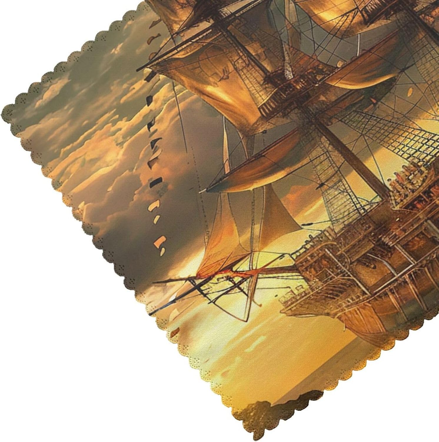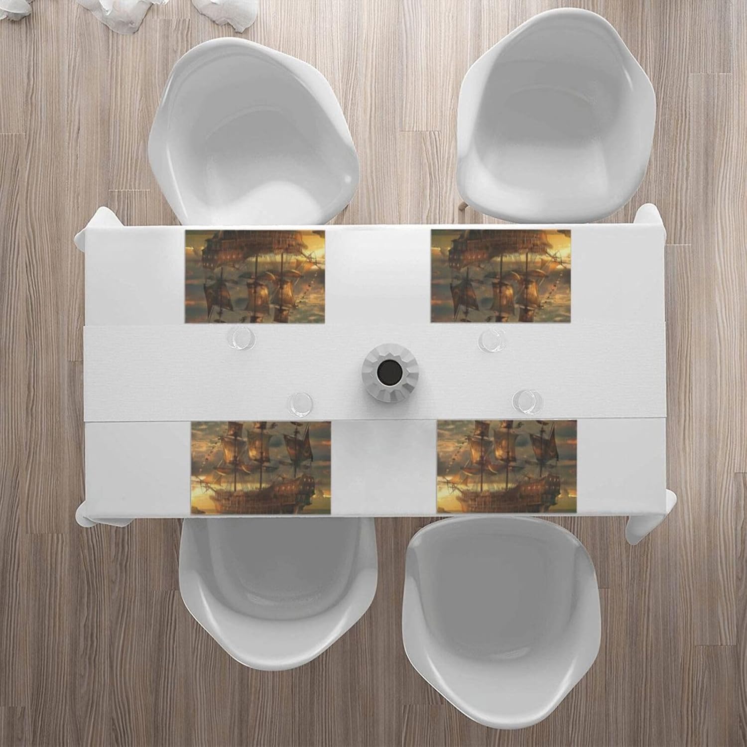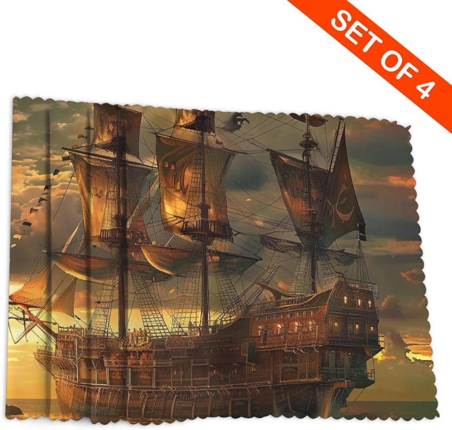 Fantasy Pirate Ship Printed Heat Resistant Placemats 4 PCS – Non-Slip Washable Kitchen Table Mats for Dining, Parties & More (12x18in, Polyeste)