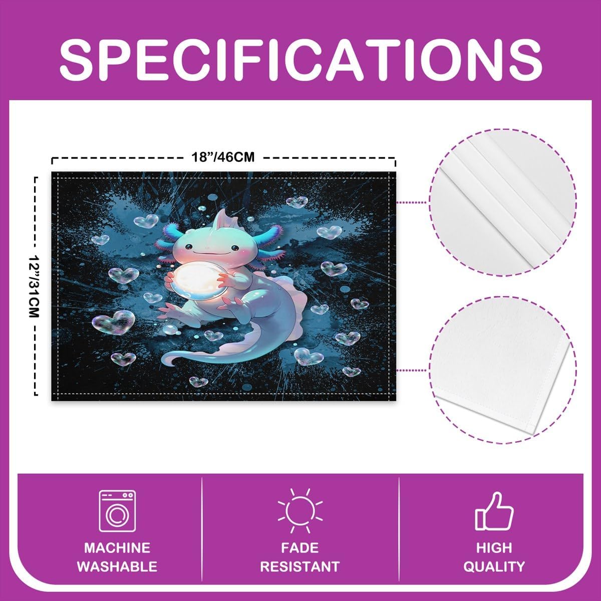Feelyou Cute Axolotl Placemats Set of 4 18