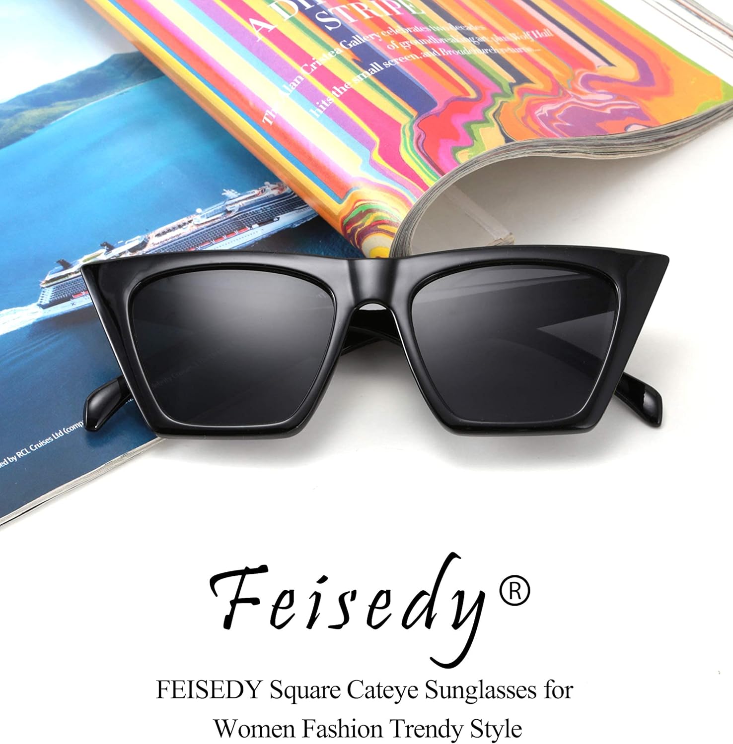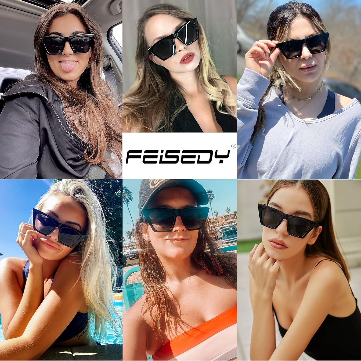 FEISEDY Vintage Square Cat Eye Sunglasses Women Trendy Cateye Sunglasses B2473