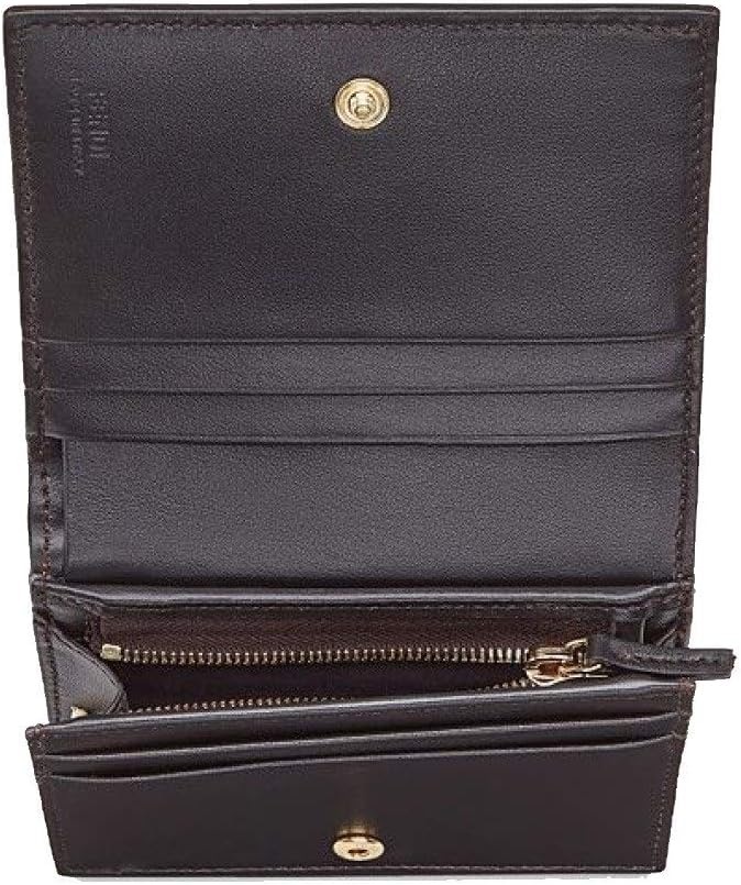 FENDI Calf Leather Signature Logo Brown Pink Small Bifold Wallet 8M0420