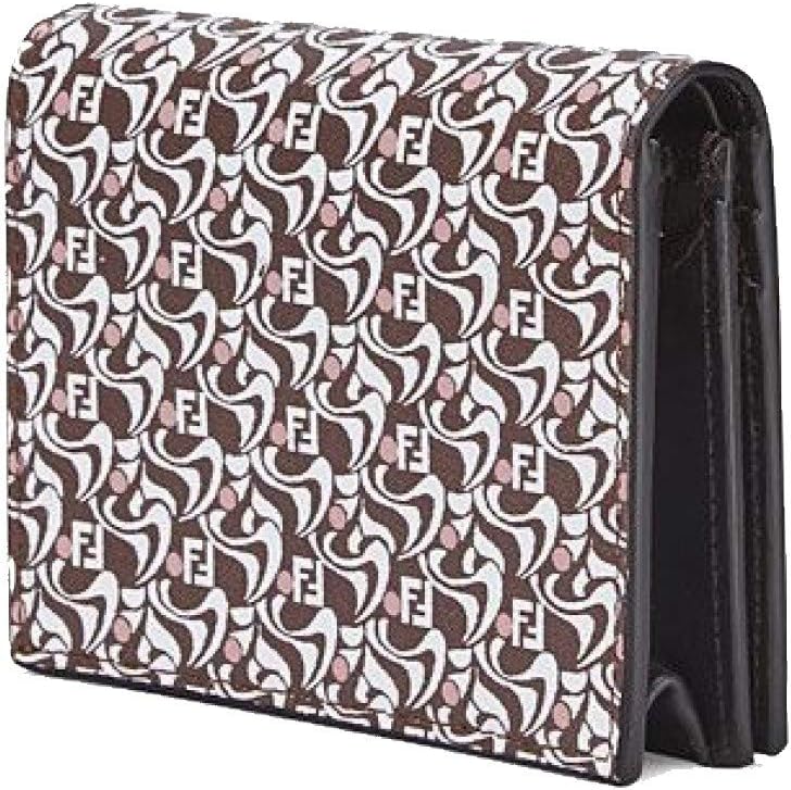 About this itemnBrand: Fendi, Model number: 8M0420, New, Bifold WalletnExterior: Brown, Rosa pink, and white design; Interior: Brown leather and fabric liningnFeatures: Signature Fendi Logo, Gold-tone hardware, Snap closure, Five card slots, One bill slot, Coin compartment with zippernMeasurements: 4.25 x 1 x 3.5