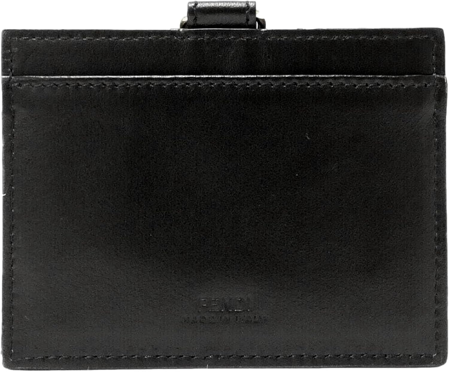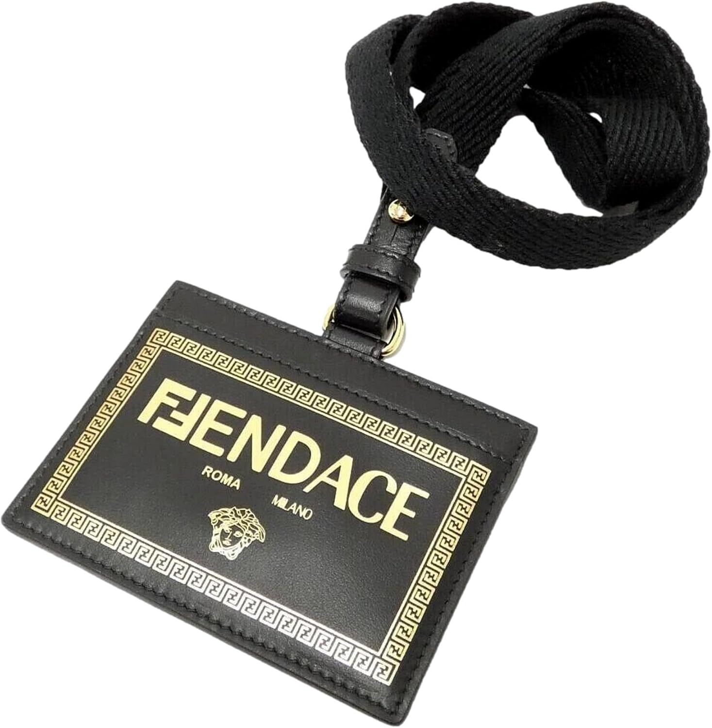 FENDI Fendace Black Leather Card Case Wallet Lanyard