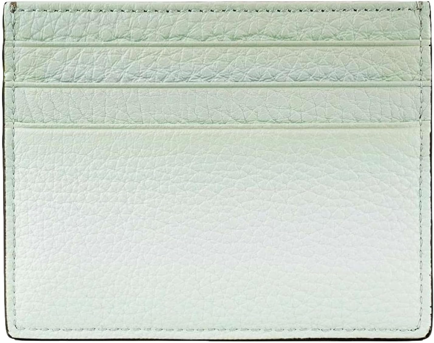 FENDI FF Logo Light Gray and Blue Pebbled Calf Leather Card Case Wallet 7M0164
