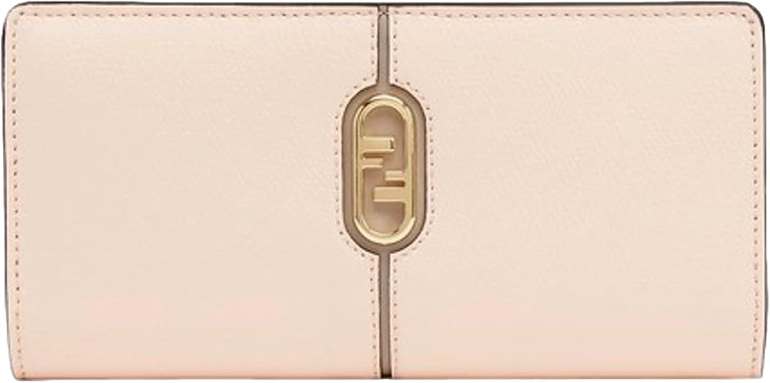 FENDI O’Lock Rose Pink and Tortora Gray Calf Leather Snap Continental Wallet, Medium
