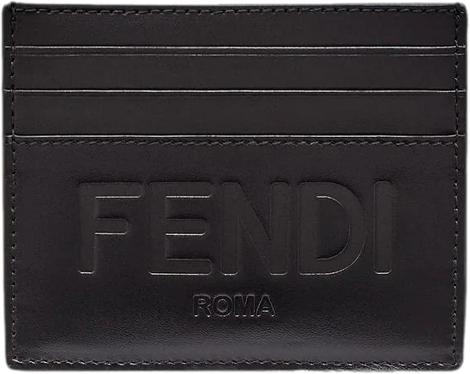 FENDI Roma Black Calfskin Leather Embossed Logo Card Case Wallet 7M0164