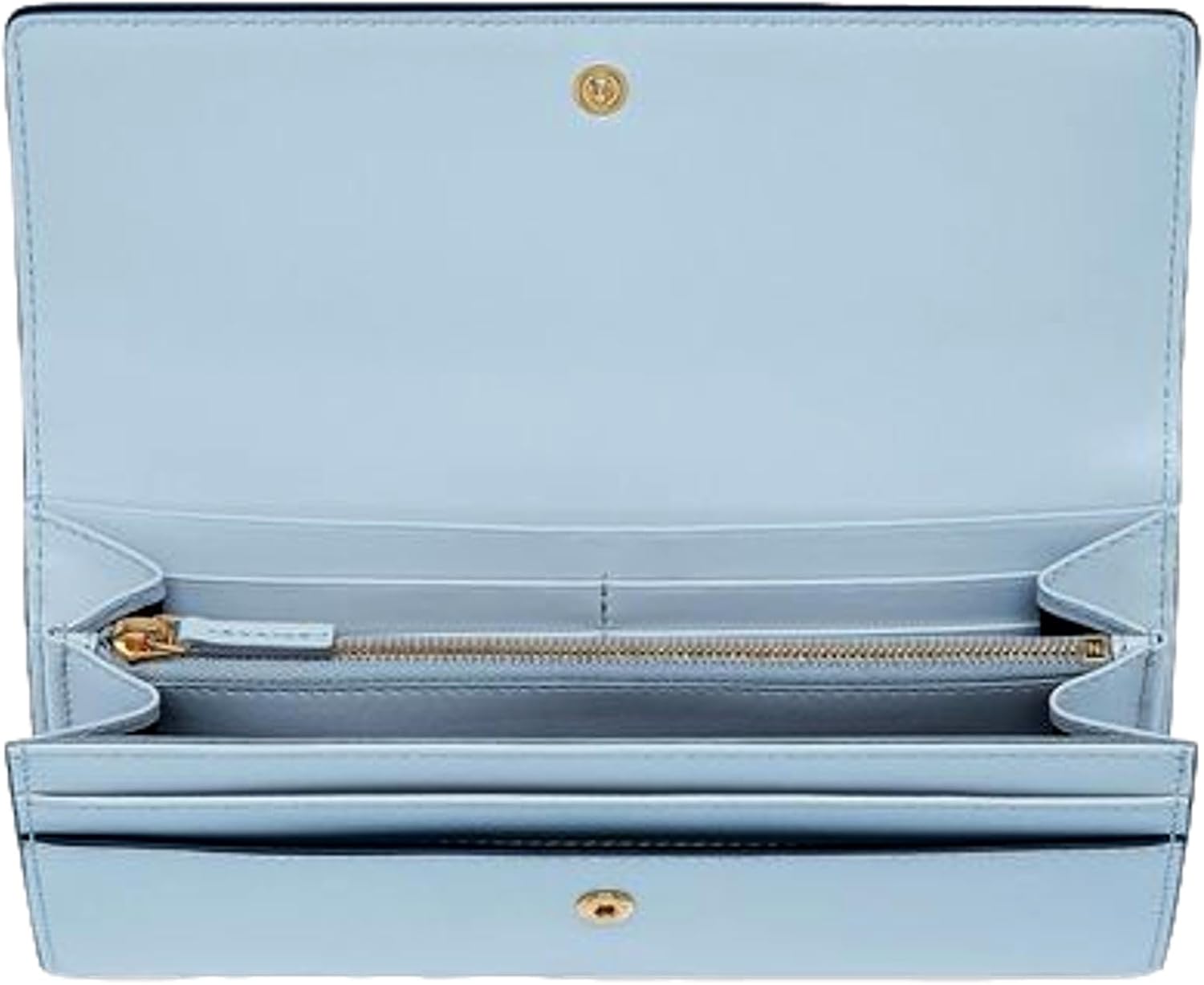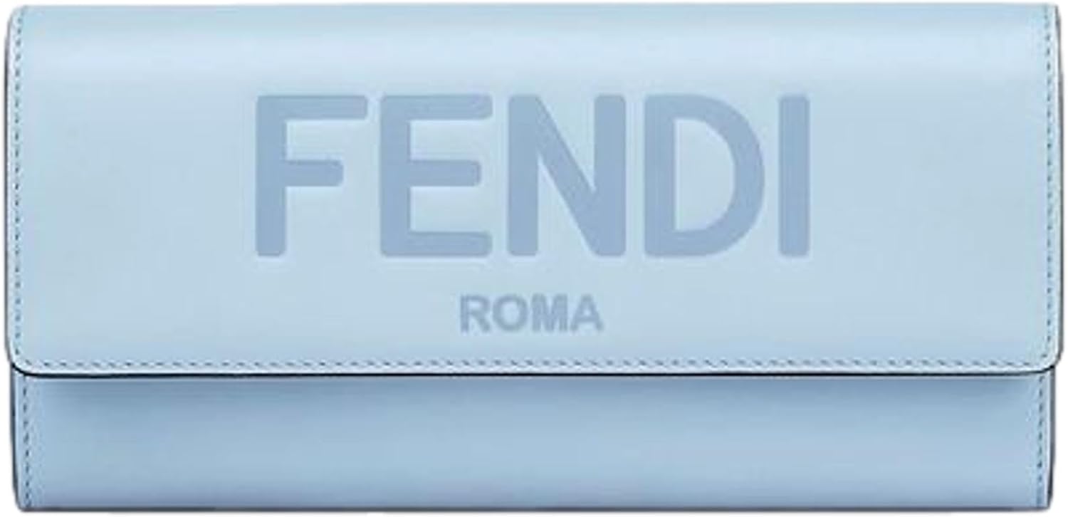 About this itemnCarry all your essentials in style with the Fendi Roma continental wallet. Crafted from supple light blue calf leather, the chic design is complete with an embossed Fendi Roma logo and gold-tone hardware.nThis spacious long continental wallet features ten credit card slots, one middle zipper compartment, and four bill compartments making it the perfect everyday wallet!nModel: 8M0251 Light Blue Calfskin Leather Fendi Roma embossed logo Snap closurenThree compartments One middle zipper compartment Four Bills Slots Ten credit card slotsnMeasurements: 7.25
