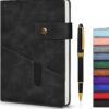 Black A5 Lined Leather Journal Notebook for Men Women,5.9 X 8.4