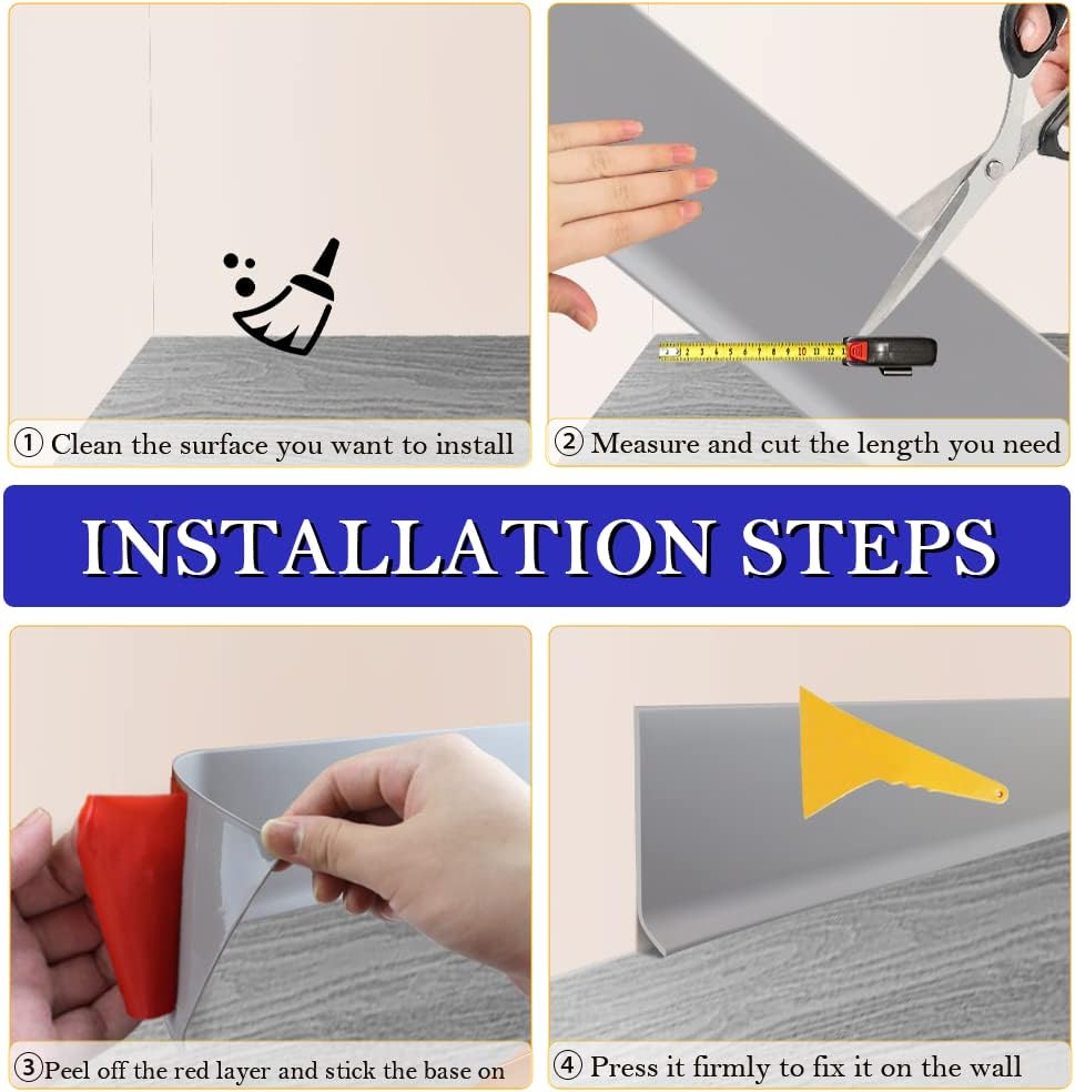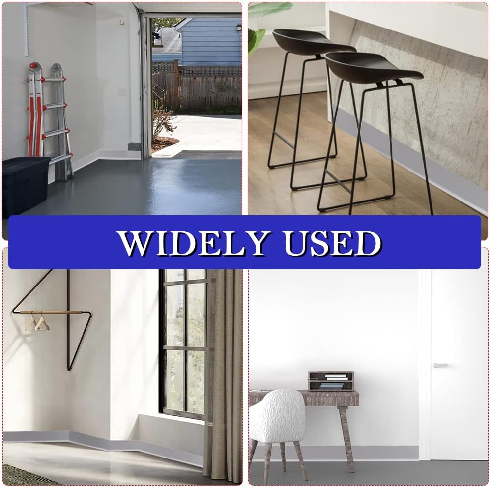 About this itemnSuper Strong Adhesive: Our baseboard trim features a super sticky self-adhesive tape that doesn’t easily peel off after application and can be easily removed without leaving any traces for most materials.nEasy Operation: With a self-adhesive design, installation is easy and requires no additional tools. Simply clean the surface, measure the required length, cut to size, peel off the adhesive stickers, stick the wall base fully on the wall. The whole process is easy and time-saving, even if you are a beginner.nHigh-quality Material: Made of advanced soft vinyl, our rubber trim molding is durable and flexible, not easy to crack and can be tailored by yourself. It is also waterproof and easy to clean with a wet rag if there are stains.nToe design: The toe design of this flexible baseboard molding effectively covers up defects and uneven ground while preventing dust from entering the gap and making your room look clean and tidy.nApplication scenario: Vinyl wall base self adhesive is perfect for all kinds of smooth walls, including wood, marble, glass, metal, tiles, plastic. Rubber baseboard can be widely used as decoration and edge protection in your bathroom, bedroom, living room, kitchen, stairway, hallway, garage, gym, RV, nursery, Office, Hospital, ext.n See more product details