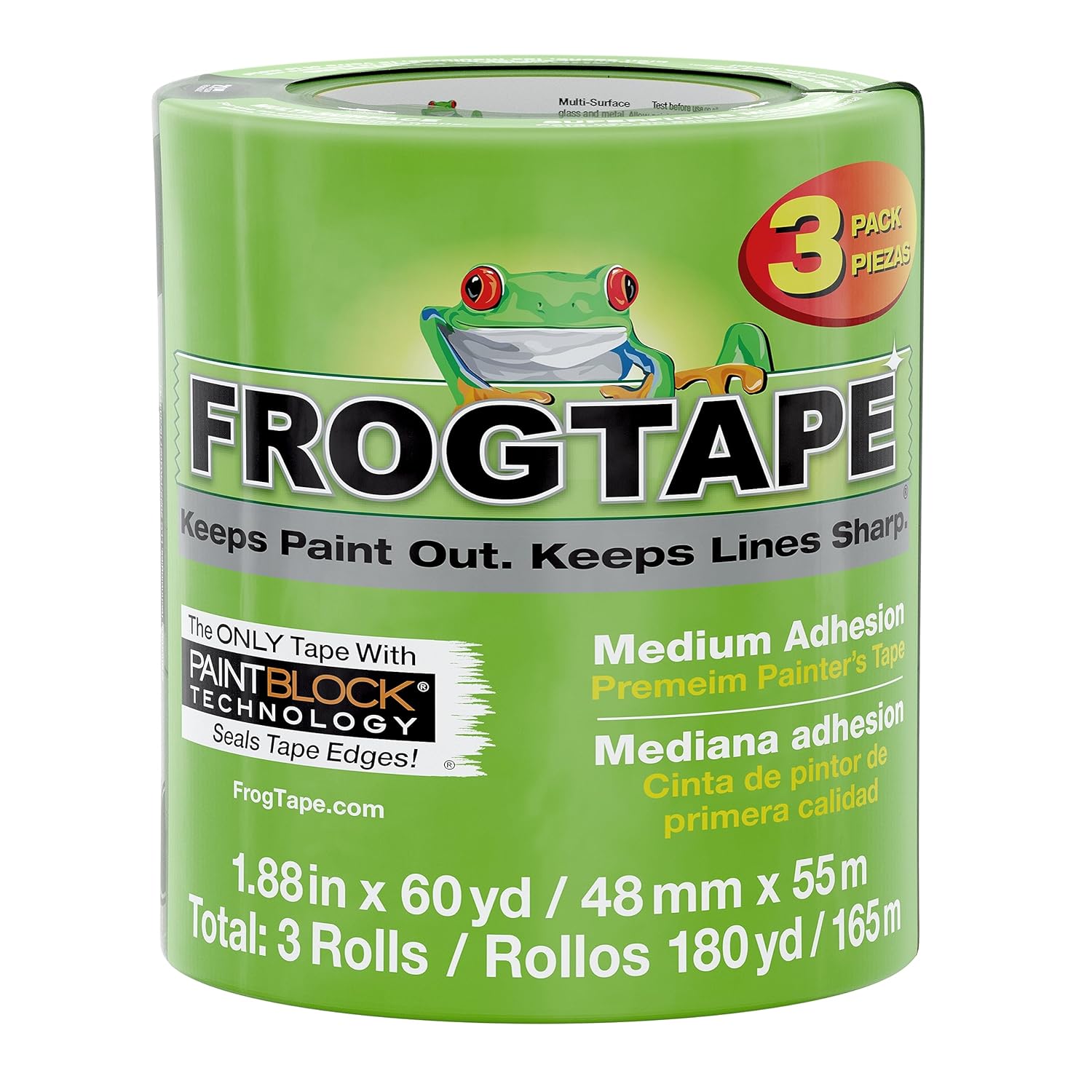 FROGTAPE Multi-Surface Painter’s Tape with PAINTBLOCK, Medium Adhesion, 1.88 Inches x 60 Yards, Green, 3 Rolls (240661)